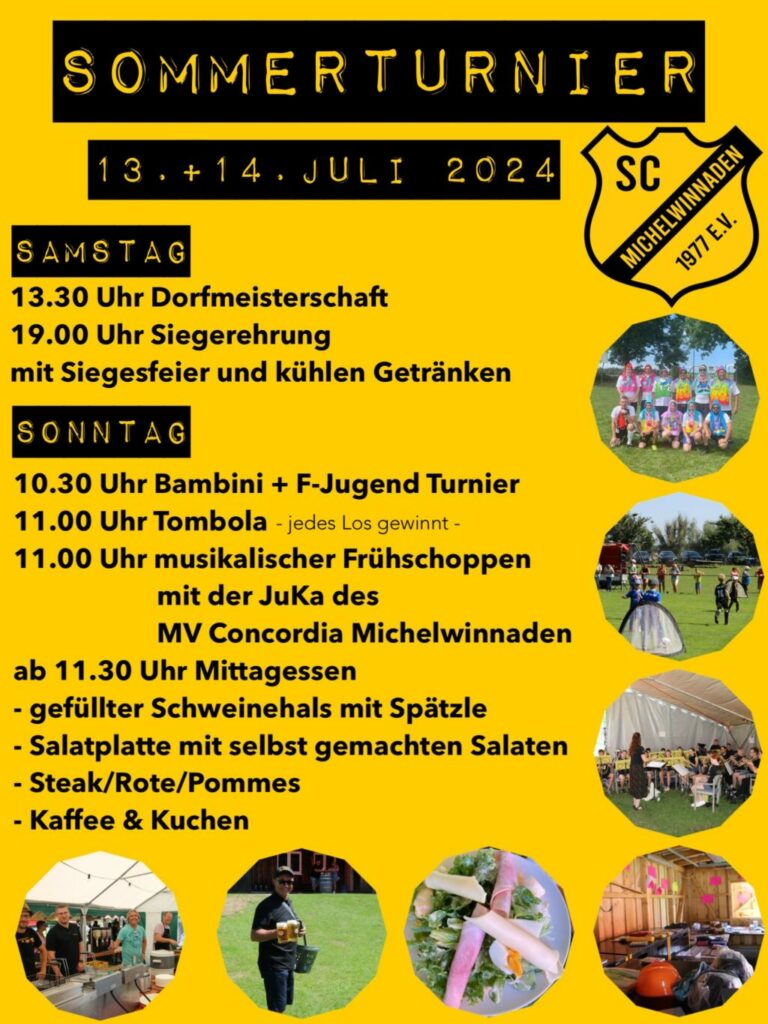 Michelwinnaden – Am kommenden Wochenende, am 13. und 14. Juli 2024, lädt der SC Michelwinnaden zu seinem jährlichen Sommerturnier ein.