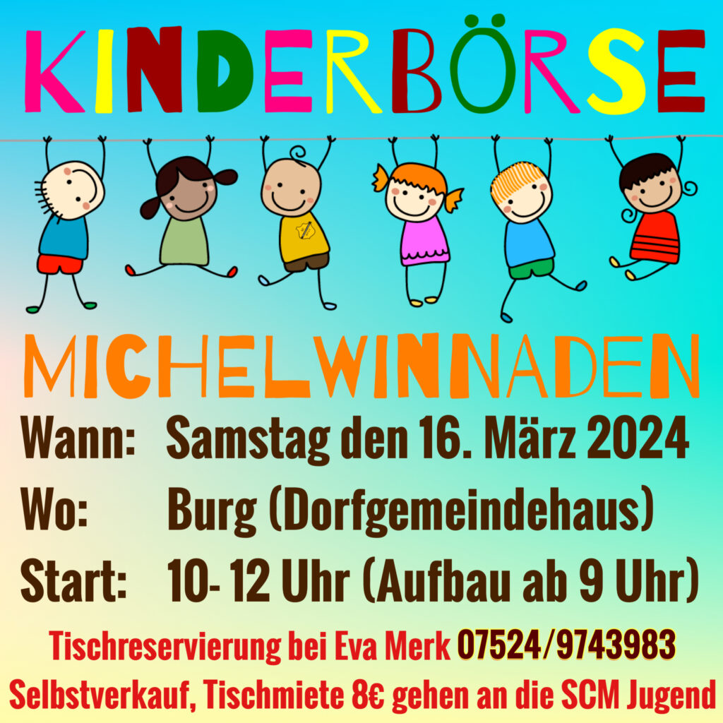 Standanmeldungen für die Kinderbörse werden unter 07524 9743983 entgegengenommen. Die Standgebühr beträgt 8 €, der Erlös geht ebenfalls an die Jugendabteilung.