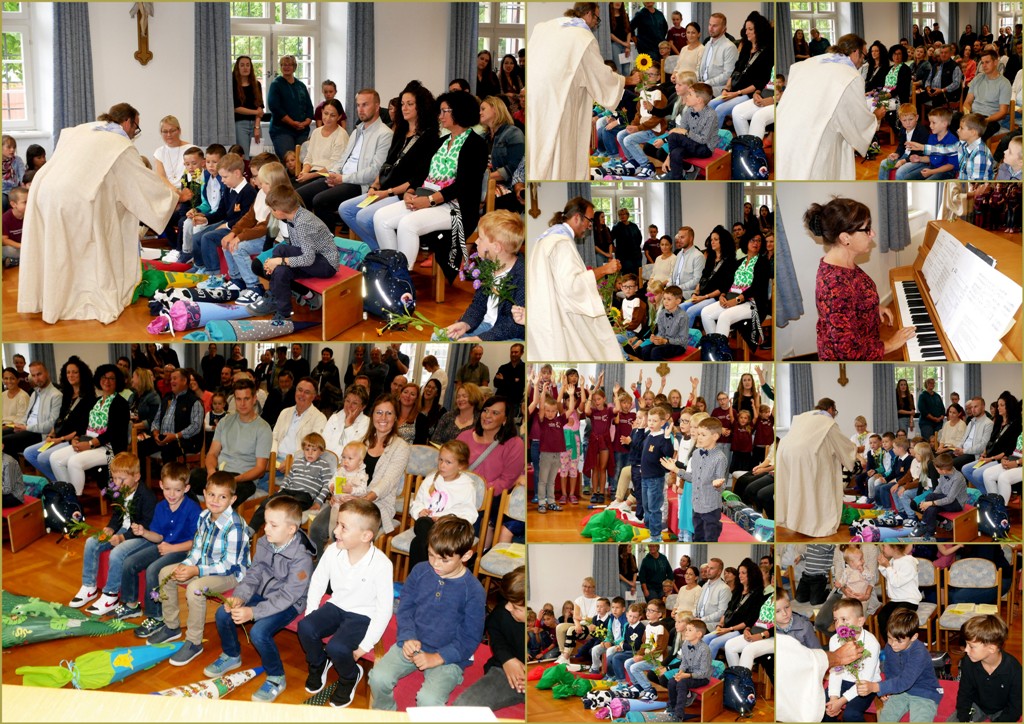 Der 1. Schultag am Donnerstag (14. September) mit Gottesdienst, Begrüßungsaktionen und Vorstellung des momentanen Lehrerinnenteams (zwei Lehrerinnen fehlten noch krankheitsbedingt) wurde zu einem besonderen Erlebnis für die Abc-Schützen im proppenvollen Pfarrgemeindesaal.