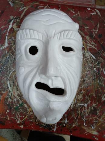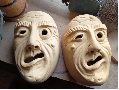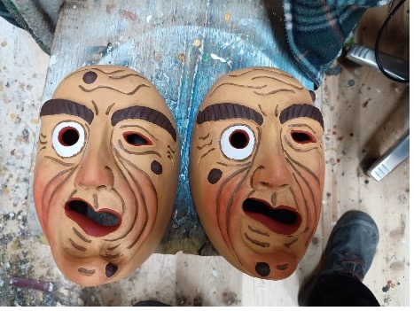 Zum Abschluss wird eine Patina, eine dünne Schicht, welche der Maske eine antike und gealterte Optik verleiht, aufgetragen. Dieser Prozess sorgt für einen harmonischen Farbübergang und verleiht der Maske ein natürliches, abgerundetes Aussehen. Sie nimmt den Farben ihre Schärfe und lässt sie weicher und einheitlicher erscheinen.