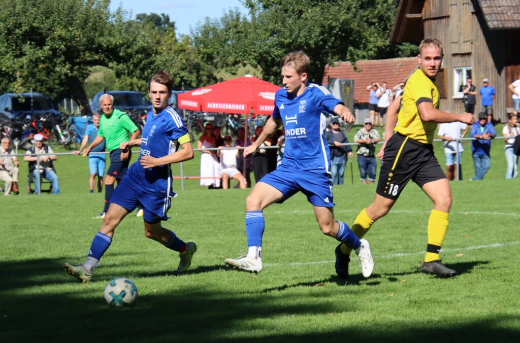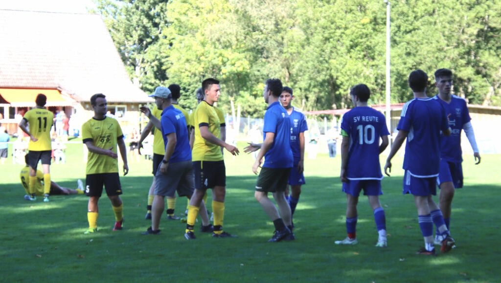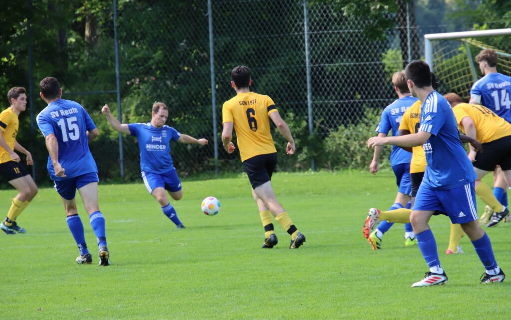 Von Beginn ließen die Reutener Gäste die nötige Körpersprache im Derby vermissen und die bissigeren Hausherren kauften dem SVR schnell den Schneid ab. So kamen die Reutener anfangs auch nicht vor das Tor der Gastgeber und es fehlten Tempo sowie die zündenden Ideen. Die erste Möglichkeit gab’s nach zwanzig Minuten, doch Wasem Mahjoub scheiterte am Keeper. Wenig später nutzte Sean Brandt einen direkt verwandelten Eckball zum Führungstreffer.