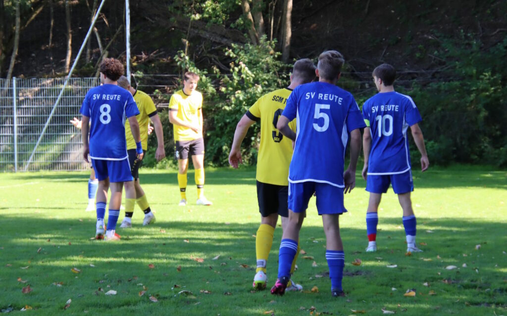 Der gerade eben erst eingewechselte A-Junior Piet Henle hatte auf rechts freie Fahrt und traf abgezockt zum 0:3. Das war gegen langsam resignierende Gastgeber bereits die Vorentscheidung und die Gäste ließen nun absolut nichts mehr anbrennen. Reute hielt nun das Tempo hoch und der SCM zollte diesem in der Schlussphase immer mehr Tribut. Nach schöner Vorarbeit von Piet Henle traf Justin Matt in der Mitte unter die Querlatte zum 0:4. Nach Foul an Quentin Nowak gab’s den fälligen Strafstoß für Reute, doch SCM-Keeper Fabian Heinzler parierte prächtig gegen Linus Hörmann. Die Gäste ließen aber weiterhin nicht locker und schließlich traf Piet Henle mit seiner zweiten Bude an diesem Tag zum 0:5-Endstand.