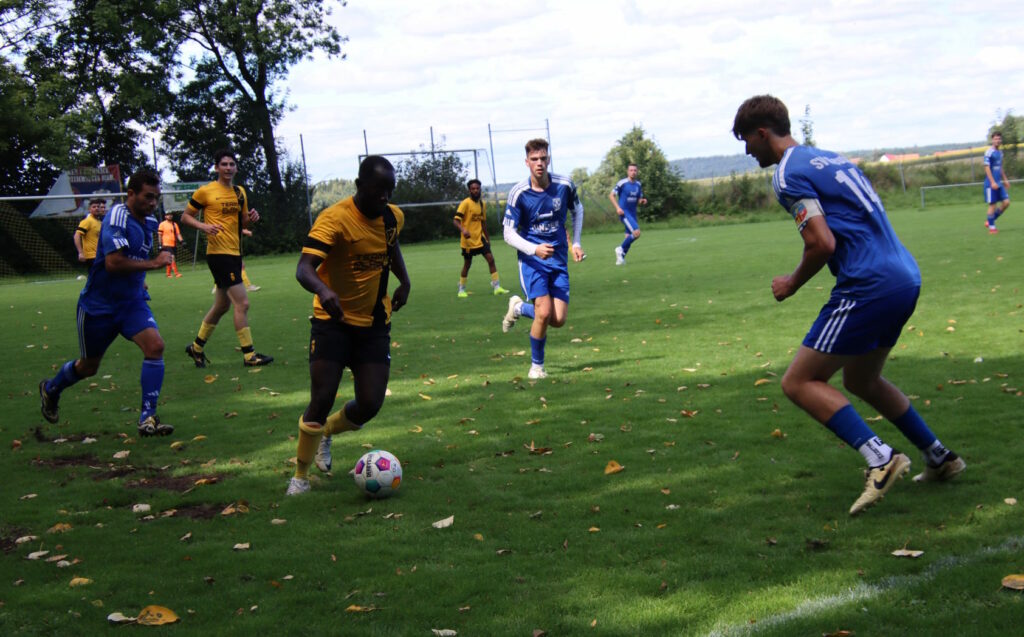 Michelwinnaden war im Vergleich zum Pokalmatch vor drei Wochen personell besser aufgestellt und suchte schnell durch aggressives Anlaufen seine Chancen. Bereits in der Anfangsminute die große Chance für den SCM, doch SVR-Keeper Noah Bryk zeigte sich sofort hellwach. Die Gäste kamen zunächst kaum in die Nähe des gegnerischen Strafraums und hatten den ersten Abschluss durch Johannes Freßle nach einer Viertelstunde. Nur wenige Minuten später klärte Noah Bryk abermals mit tollem Reflex und verhinderte einen Gegentreffer.