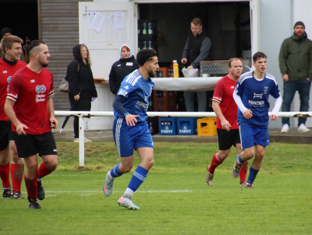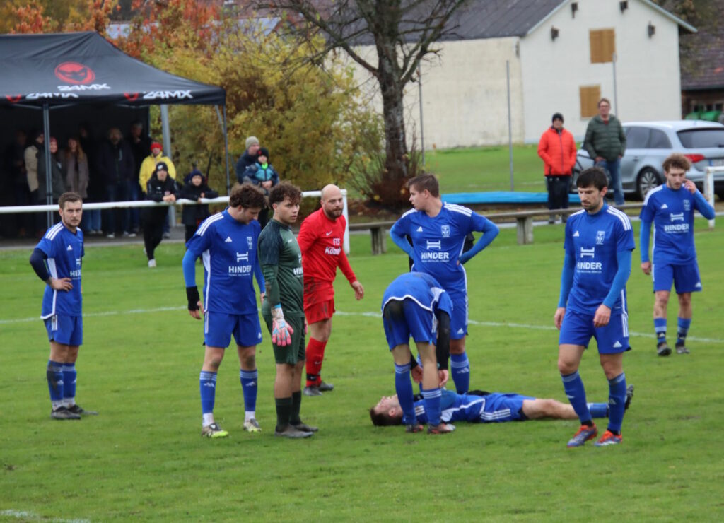 Nach dem Seitenwechsel folgte bei nun schauerartigem Regenfall schnell die nächste kalte Dusche für die Gäste. Es waren noch gar nicht alle wieder an der Seitenlinie angekommen, als Elias Fässler einen Eckball mit etwas Glück zum 2:0 verwerten konnte. In der Folge schüttete es nun regelrecht von oben und der tiefe Platz wurde nun immer schmieriger. Die Hausherren blieben auch weiterhin absolut giftig, beide Seiten hatte immer mehr Standschwierigkeiten. So kam Reute weiterhin nur selten Richtung Strafraum und rannte vergeblich gegen Wind und Regen an. Eine gute Viertelstunde vor Spielende schlug erneut das starke Trio der SGM Fronhofen/Fleischwangen zu: Marius Eninger trat einen Freistoß in den Strafraum, Fabian Pfeiffer legte quer und Elias Fässler konnte mühelos zum 3:0 einschieben – das war dann schon die Vorentscheidung. Die Gastgeber ließen auf dem immer schlammiger werdenden Spielfeld nicht nach und setzten kurz vor Spielende sogar noch einen drauf. Erneut Fabian Pfeiffer startete einen unwiderstehlichen Gegenstoß, SVR-Keeper Noah Bryk konnte zwar noch parieren, doch Elias Fässler staubte zum lupenreinen Hattrick und 4:0-Endstand ab. Für die Gäste gilt es die Niederlage ganz schnell abzuhaken und den Blick auf die anstehende Trainingswoche und die nächste Auswärtspartie am kommenden Sonntag in Bodnegg zu richten.
