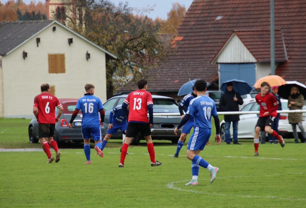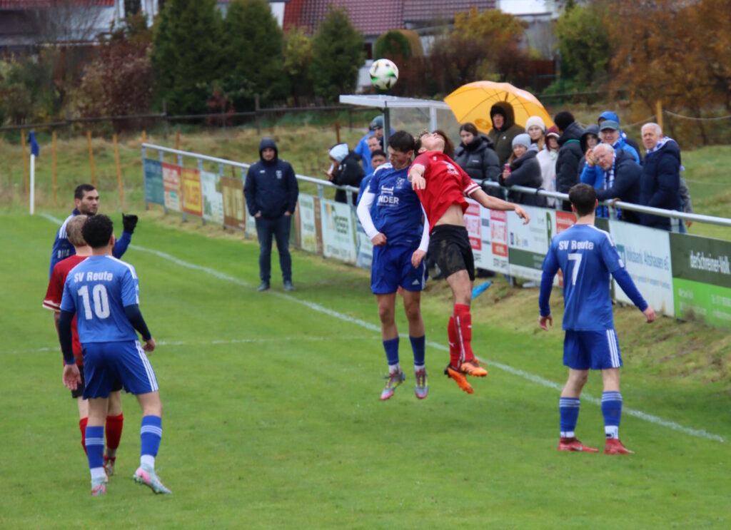 Nach dem Topspiel in Horgenzell stand für den SVR das nächste schwierige Auswärtsspiel auf dem Programm. Gastgeber Fronhofen/Fleischwangen war nach holprigem Start in die Saison mächtig in Schwung gekommen und zeigte gegen den Tabellenführer von Beginn an, dass das letzte Heimspiel vor der langen Winterpause mit aller Macht gewonnen werden sollte. SVR-Keeper Noah Bryk musste bereits in der achten Minuten den frühen Rückstand verhindern, als er glänzend zur Ecke parieren konnte. Auch in der Folge hatte die SGM eindeutig die besseren Tormöglichkeiten. Reute kam nur zu etlichen Eckbällen, die aber allesamt nicht verwertet werden konnten. Die Hausherren spielten weiter schnörkellos nach vorne und ließen sich auch vom tiefen Geläuf nicht irritieren. Nach einem Gästeeinwurf eroberte der Tabellenvierte den Ball und es ging ganz schnell wieder nach vorne: Die starken Marius Eninger und Fabian Pfeiffer kombinierten sich von links in den Strafraum, das ideale Zuspiel setzte schließlich Marius Eninger unter die Latte zum 1:0. Reute suchte nun vor dem Pausenpfiff noch den Ausgleich, doch außer ein paar brenzligen Situationen im Strafraum der Hausherren kam nichts dabei raus. Die beste Chance hatte noch Julian Neyer mit einem Kopfball, der aber rechts vorbei ging.
