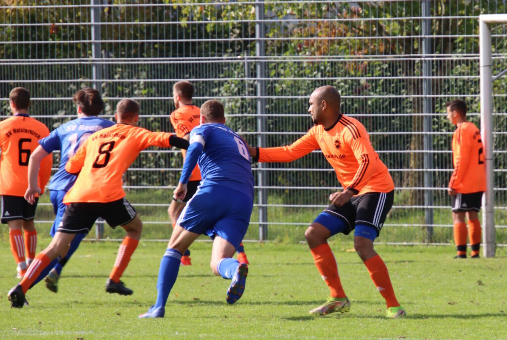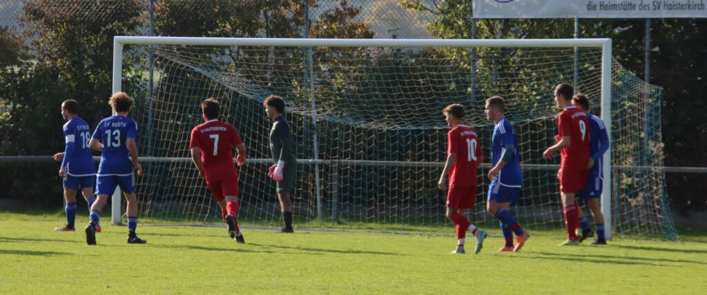 Nach dem Heimsieg gegen Kosova Weingarten ging die Reutener Zweite hochmotiviert in das Derby beim Nachbar SV Haisterkirch. Die Gastgeber boten viel Erfahrung auf und hatten reichlich Aushilfe von der AH am Start, im Durchschnitt waren die Hausherren knapp 10 Jahre älter als die Reutener Gäste. Das spiegelte sich auch im Spielverlauf wieder und die Haisterkircher machten viel mit Routine und Erfahrung wett, was der SVR an Schnelligkeit voraus war. Die Reutener Zweite hatte ganz früh die große Chance auf den Führungstreffer, doch Quentin Nowak setzte einen Foulelfmeter links neben das Gehäuse. Eine halbe Stunde später bot sich den Gastgeber ebenfalls die Möglichkeit vom Elferpunkt, doch SVR-Keeper Dennis Kern parierte den Strafstoß von Kai Hornung bravourös und bewahrte seine Mannen vor einem Rückstand. Nach dem Seitenwechsel dasselbe Bild, keine Seite wollte den Fehler machen und ein Gegentor kassieren. Die Torabschlüsse blieben weitgehend harmlos, ehe dann doch die Haisterkircher Erfahrung zuschlug. Nach einem Ballverlust auf der linken Seite spielte der Gastgeber schnell vor das Reutener Tor, wo Daniel Allgäuer genau richtig stand und per platziertem Kopfball das 1:0 besorgte. In der Schlussphase kam dann so richtig Feuer in die Partie und die Gäste wollten sich hier sichtlich nicht geschlagen geben. Gut fünf Minuten vor Spielende belohnte sich das Team um die beiden Coaches Robin Reuter und Jacob Schuhmacher. Nach einem Rückpass setzte Achmed Ben Bacha energisch nach und Kevin Ringgenburger konnte aus gut zehn Meter ins leere Tor zum umjubelten 1:1-Ausgleich einschieben – der erste Treffer im SVR-Trikot für den gelernten Torhüter. In den verbleibenden Minuten wurde um jeden Grashalm gekämpft, doch ein weiterer Treffer fiel nicht mehr und die Lokalrivalen trennten sich schiedlich friedlich mit einem Remis. Mit Leon Schlotter feierte auf Gästeseite ein weiterer junger Akteur sein Debüt im Trikot des SV Reute.
