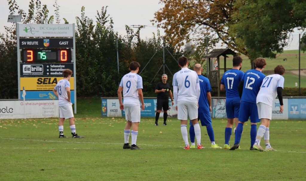 Der SV Reute konnte gegen einen gut aufspielenden TSB Ravensburg einen weiteren Sieg einfahren und kam nach hart umkämpften 90 Minuten mit insgesamt 12 gelben Karten zum einem 4:0-Heimsieg. Die Gäste vergaben in der Partie gleich zwei Strafstöße.
