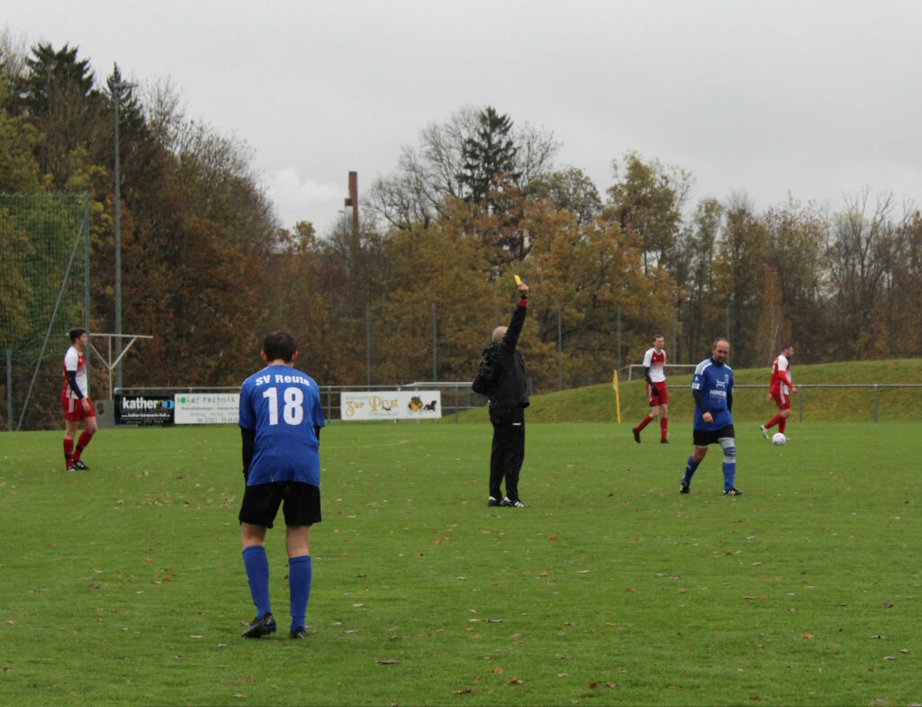 Sechs Siege in Folge verzeichnete Wolfegg vor der Begegnung gegen den SV Reute und wollte als Tabellenführer gegen die ersatzgeschwächten Gäste mit einem weiteren Dreier nachlegen. Doch wie schon vor kurzem gegen Bergatreute traten die Gäste um SVR-Spielertrainer Jonas Klawitter sehr diszipliniert auf und Torchancen waren im ersten Durchgang bei miesem Fritz-Walter-Wetter Mangelware. Die Reutener Hintermannschaft machte einen sehr soliden Eindruck, bei einer guten Chance für Wolfegg zeigte sich Keeper Daniel Briegel auf dem Posten. Nach dem Seitenwechsel kam mehr Tempo ins Spiel und die Gäste wurden nun immer mutiger. Aus einer gefährlichen Freistoßsituation heraus entstand schließlich der Führungstreffer für die Gäste. Maximilian Heß trat einen Freistoß in den gegnerischen Strafraum, wo dieser an die Hand eines Wolfeggers sprang. Den fälligen Handelfmeter verwandelte Spielführer Niklas Klawitter sicher zum 0:1. Wolfegg verstärkte nun die Offensive und drängte auf den Ausgleich, am Reutener Keeper Daniel Briegel war an diesem Tage aber kein Vorbeikommmen. Eng wurde es dann nochmals in der Schlussphase, als Johannes Freßle nach einem Foulspiel vom Feld musste – er hatte sich bei einem Zweikampf verschätzt und war schlicht zu spät gekommen. Mit vereinten Kräften brachten die Gäste den Vorsprung aber auch über eine fünfminütige Nachspielzeit und konnten somit einen sehr wichtigen Auswärtsdreier beim bisherigen Tabellenführer feiern.