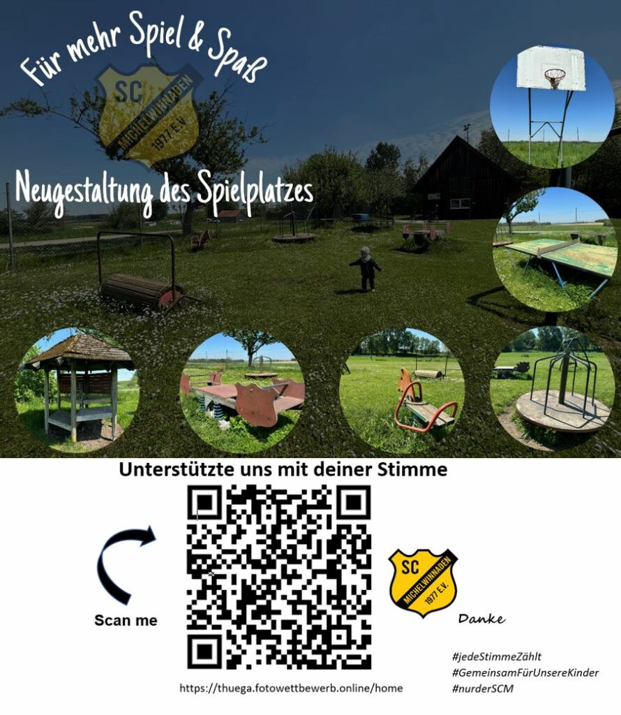 Der Gewinner wird über eine Bildabstimmung ausgewählt. Der SC Michelwinnaden würde sich über viele Stimmen freuen. Einfach den QR-Code scannen oder auf der Website https://thuega.fotowettbewerb.online/home für den SC Michelwinnaden abstimmen. Der SCM bedankt sich im Voraus für jede Unterstützung bei der Abstimmung.
