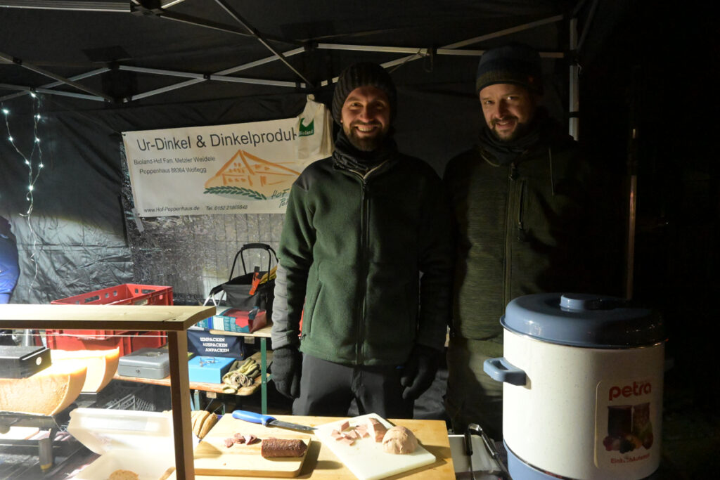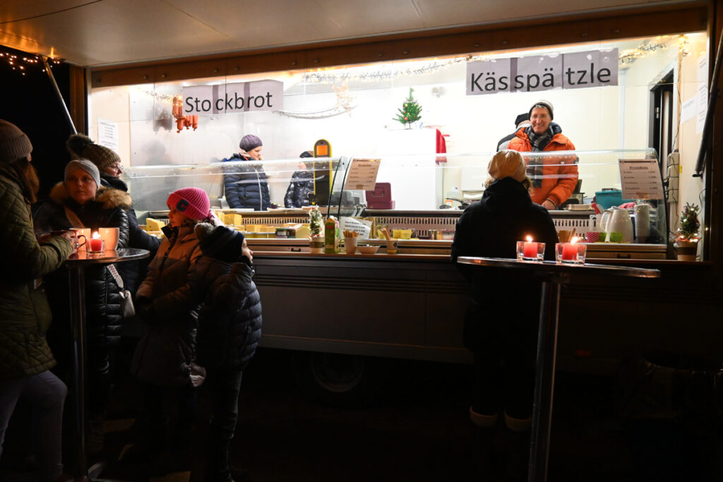 An den Ständen konnte man eine liebevolle Auswahl an weihnachtlichen Dekoartikeln, handgefertigten Geschenken und kulinarischen Köstlichkeiten, wie zum Beispiel Salami, Lyoner und Saitenwürste vom heimischen Reh bis zu selbstgebackenen Weihnachtsguetzla entdecken. Für die Hungrigen und Durstigen war ebenfalls bestens gesorgt. Pommes, Kässpätzla, Brot mit Raclette-Aufstrich, warme und kalte Getränke mit und ohne Alkohol standen zur Auswahl.