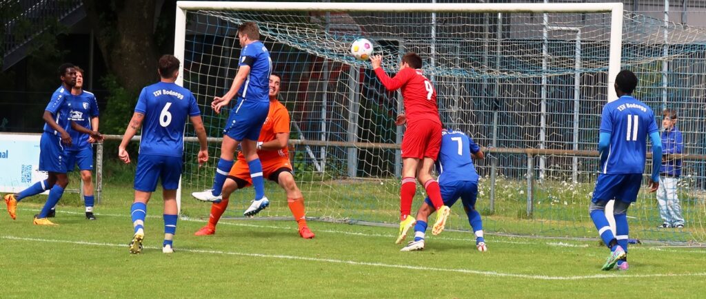 In der 1. Halbzeit merkte man nicht, dass die Gastmannschaft aus Bodnegg schon als sicherer Absteiger feststeht. Es entwickelte sich ein kampfbetontes Fußballspiel mit etlichen Torchancen auf beiden Seiten.