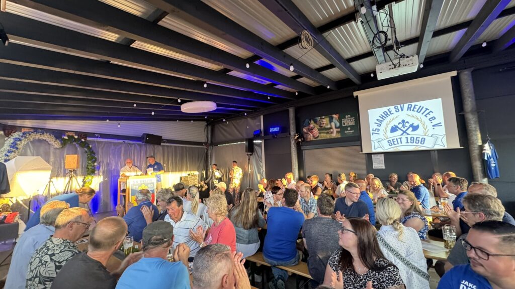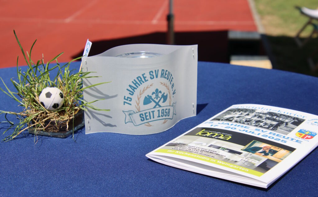 Bad Waldsee – Mit einem überaus gut besuchten Jubiläumsabend feierte der SV Reute am vergangenen Freitagabend (18.7.) offiziell sein 75-jähriges Vereinsjubiläum. Neben einigen Grußworten und musikalischen Auftritten gab’s allerlei visuelle Erinnerungen an 75 Jahre SV Reute sowie ein großes Treffen vieler Ehemaliger der Reutener Fußballer. Das Wetter war dem SV Reute hold und sorgte für einen wunderschönen Jubiläumsabend für die rund 450 Festgäste.