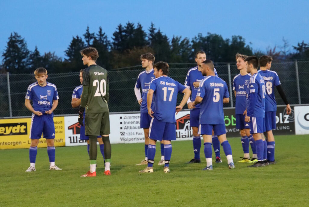 Die vorgezogene Partie des 10.Spieltages war nichts für schwache Nerven, für beide Seiten galt im Kampf um die Nichtabstiegsplätze “Verlieren verboten”. Reute musste auf Spielführer Niklas Klawitter verzichten, auch Trainer Jonas Klawitter konnte beruflich bedingt nicht vor Ort sein. Von Beginn an lebte das Flutlichtspiel auf tiefem Boden von der Spannung. Die Reutener Gäste hatten mehr Spielanteile, konnten sich zunächst aber kaum klare Torchancen erarbeiten. In der 35.Minute scheiterte Justin Matt von rechts aus spitzem Winkel krachend am Außenpfosten, wenig später hatte Fabian Schmid nach schönem Angriff die bis dahin beste Chance der Partie – der Ball strich jedoch knapp am langen Pfosten vorbei.