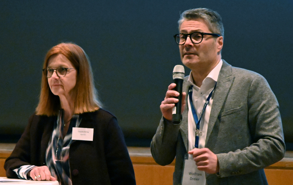 Die Einwohnerversammlung wurde moderiert von Claudia Bollig und Dr. Wolfram Dreier vom Steinbeis-Transferzentrum. Die erfahrenen Moderatoren sorgten mit der klaren Gliederung des Abends für einen glatten und sachlichen Verlauf der Veranstaltung. Von Anfang an war klar, dass an diesem Abend jeder zu Wort kommen würde, der einen sachlichen Beitrag leisten wollte, und als Bad Waldseer Bürger auch von genau den WKA, die auf der Gemarkung der Großen Kreisstadt errichtet werden sollen, betroffen ist.
