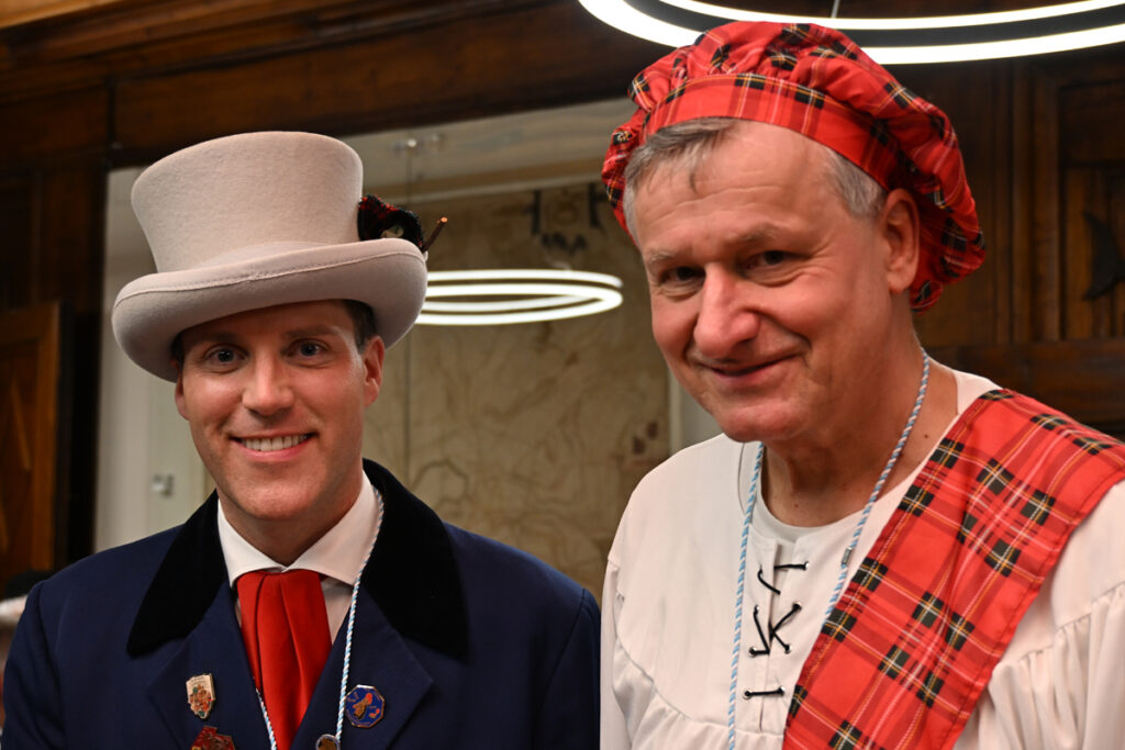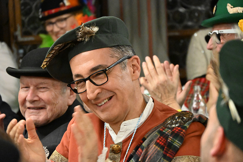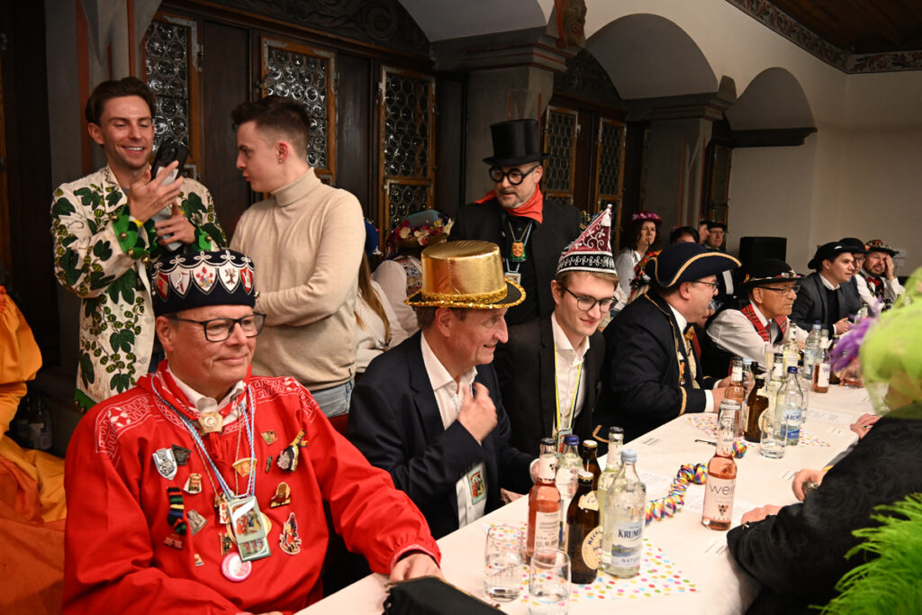 Aber dass es einen linkssozialistischen Preußen ins Hochamt der oberschwäbischen Fasnet verschlagen würde, damit hatte keiner gerechnet: Ja, er war da, der rote Gregor, der Gysi aus dem Osten. Weiter wurden gesehen: Raimund Haser MdL, Agnieszka Brugger MdB, Petra Krebs MdL, Regierungspräsident Klaus Tappeser, Alt-MP und Ex-EU-Kommissar Günther Oettinger, ein ganz treuer Anhänger des Waldseer Brauchtums, FDP-Mann Dr. Hans-Ulrich Rülke und Dr. Danyal Bayaz, grüner Hüter der Landesfinanzen. Von der heimischen Prominenz seien genannt: Roland Haag, seines Zeichens VSAN-Präsident (der in dieser Funktion am Morgen in Stuttgart dem noch amtierenden MP seine Aufwartung gemacht hatte), Prof. Rudolf Forcher, 32 Jahre lang Herrscher gewesen im historischen Waldseer Rathaus, Gerda Hymer, Polizeipräsident Uwe Stürmer … Die Aufzählung erhebt nicht den Anspruch auf Vollzähligkeit. Unser Reporter „Erre“ Linder war mitten unter ihnen. Er hat schöne Bilder heimgebracht und diese Worte: