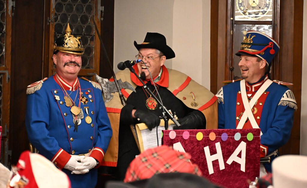 Darauf können sich die Waldseer Narren schon was einbilden: Egal, wer bei der Landtagswahl die Nase vorn hat, mit Cem Özdemir und Manuel Hagel war der zukünftige Ministerpräsident am Mittwochabend auf dem Rathaus beim Narrenrechtabholen. Das Narrenrechtabholen in Bad Waldsee wurde von der politischen Prominenz wieder mal gerne genutzt, sich dem Wahlvolk in Erinnerung zu bringen. Eine gute Gelegenheit auch für Hofmarschall Felix Schmidinger, mit feinem Spott die Politik zu triezen. So musste der im Süden doch etwas fremde Dr. Gregor Gysi den Spott des Hofmarschalls hinnehmen, war er (Gysi) seinem Zug doch nicht in Ulm, sondern erst in Augsburg entstiegen. Na ja, auch die Fuggerstadt spricht schwäbisch.