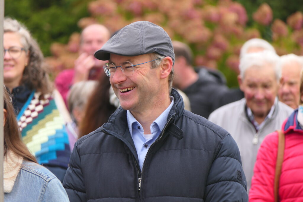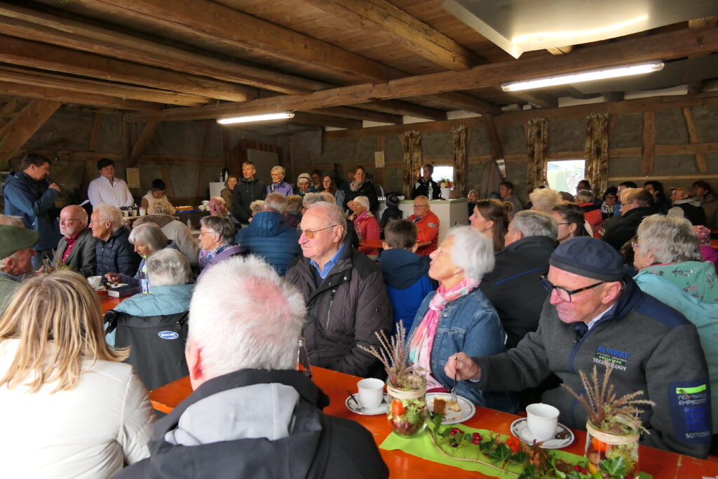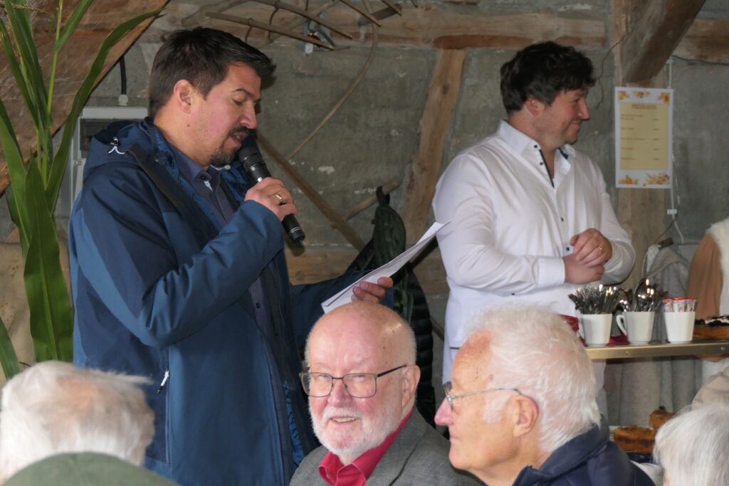 Die von Schiller beschworene Freude verbreite sich in Stadt und Land, betonte Ortsvorsteher Nico Hauff in seiner Ansprache im Nachgang zur Glockenweihe, die pünktlich um 12.00 Uhr mit Glockenklang und Angelus-Gebet gestaltet wurde. Bei der Hockete im Mennisweiler Kommunikationszentrum, besser bekannt unter dem Namen „Kochs Schopf“, zeigte er sich erfreut, dass „nach vielen Jahren der Stille endlich wieder der helle Glockenklang zu hören ist“. Der Ortsvorsteher dankte allen, die zum guten Ende der sechsjährigen Glockenstille beigetragen haben und rief, es war circa 12.30 Uhr, in der in Mennisweiler gut zu verstehendem schwäbischen Hochsprache unter großem Beifall dazu auf: „Lasset uns etzt gemeinsam feiera bis heut Obend s’Glöckle läutet!“.