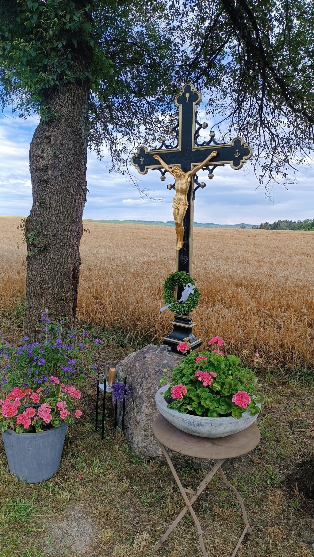 An der anschließenden Segnung des restaurierten Wegkreuzes mit Gebet und Fürbitten nahmen über 50 Personen teil. „Dieses Kreuz an der mit täglich etwa 25 000 Fahrzeugen stark frequentierten B 30 soll auch diesen vielen Verkehrsteilnehmern zum Wohle und Segen gereichen“, so der Geistliche.