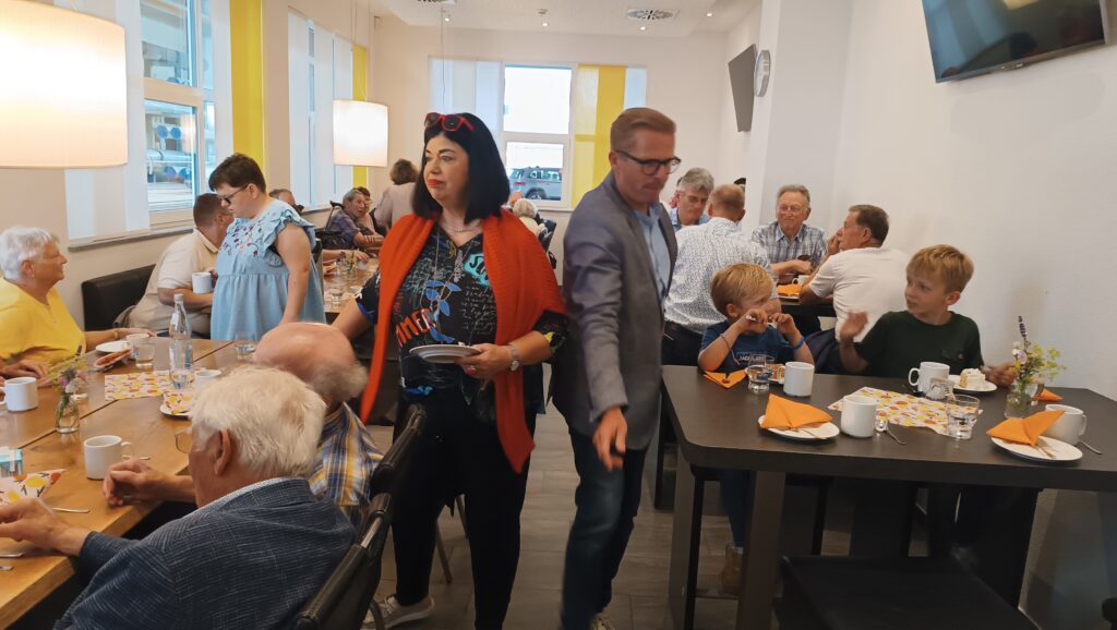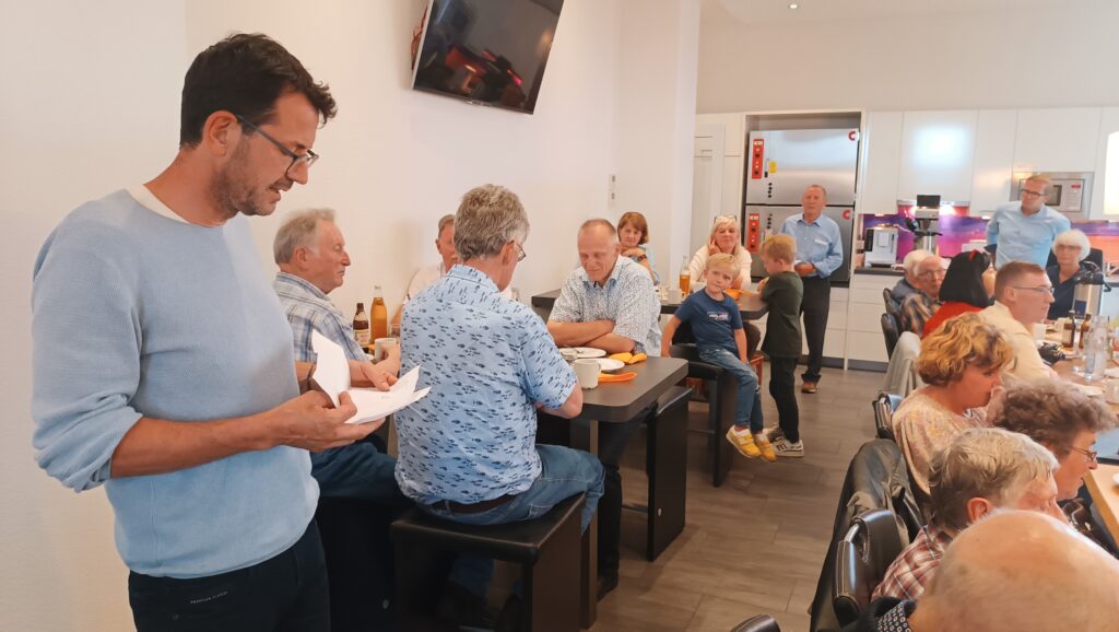 Im Anschluss hatte Markus Nold zu einer gemütlichen Einkehr in seine Firma geladen. Bei Kaffee und Kuchen gab es auch Information zu den Kosten, diese belaufen sich dank großer Eigenleistungen auf 1125 Euro und wurden von neun Spendern komplett übernommen. Interessante Ausführungen zum Thema „Wegkreuze“ machte Franz Zembrot: „Wir haben in unserer Gemeinde 30 Kreuze und neun Bildstöckle, fünf davon erfuhren in letzter Zeit eine Restaurierung. Bei drei weiteren sind diese Arbeiten auch bereits schon in Planung“.