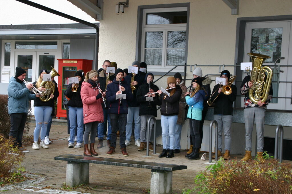 Reute-Gaisbeuren – Auch in diesem Jahr pflegten die Nachwuchsmusiker des Musikvereins Reute-Gaisbeuren, trotz Sturm und teilweise strömendem Regen, den Brauch des Weihnachtsspielens.