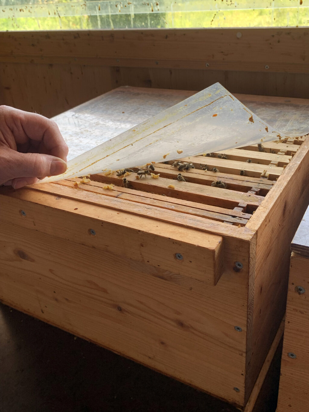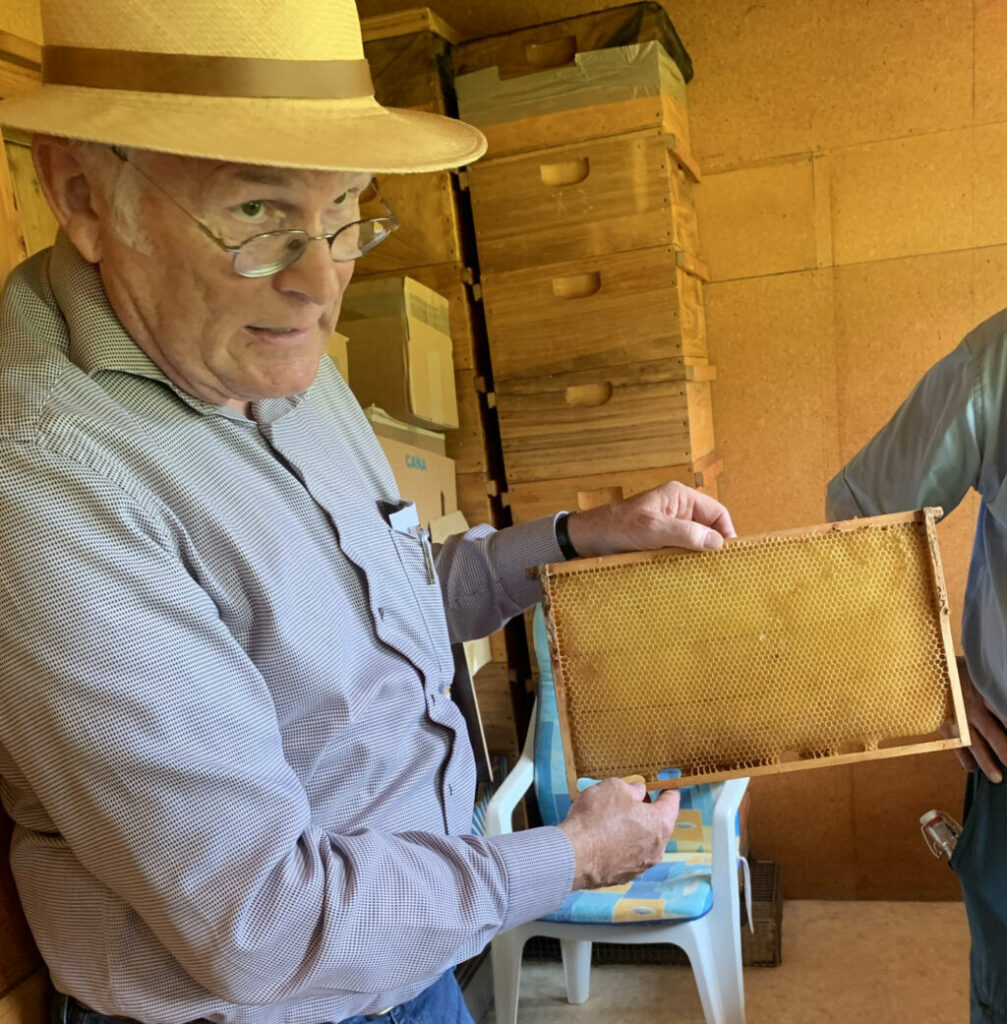 Elmar Braun zeigt eine Wabe.