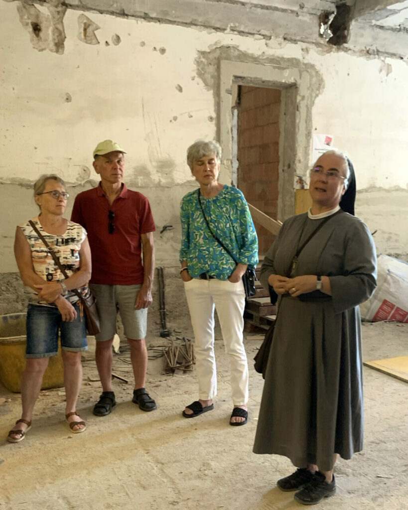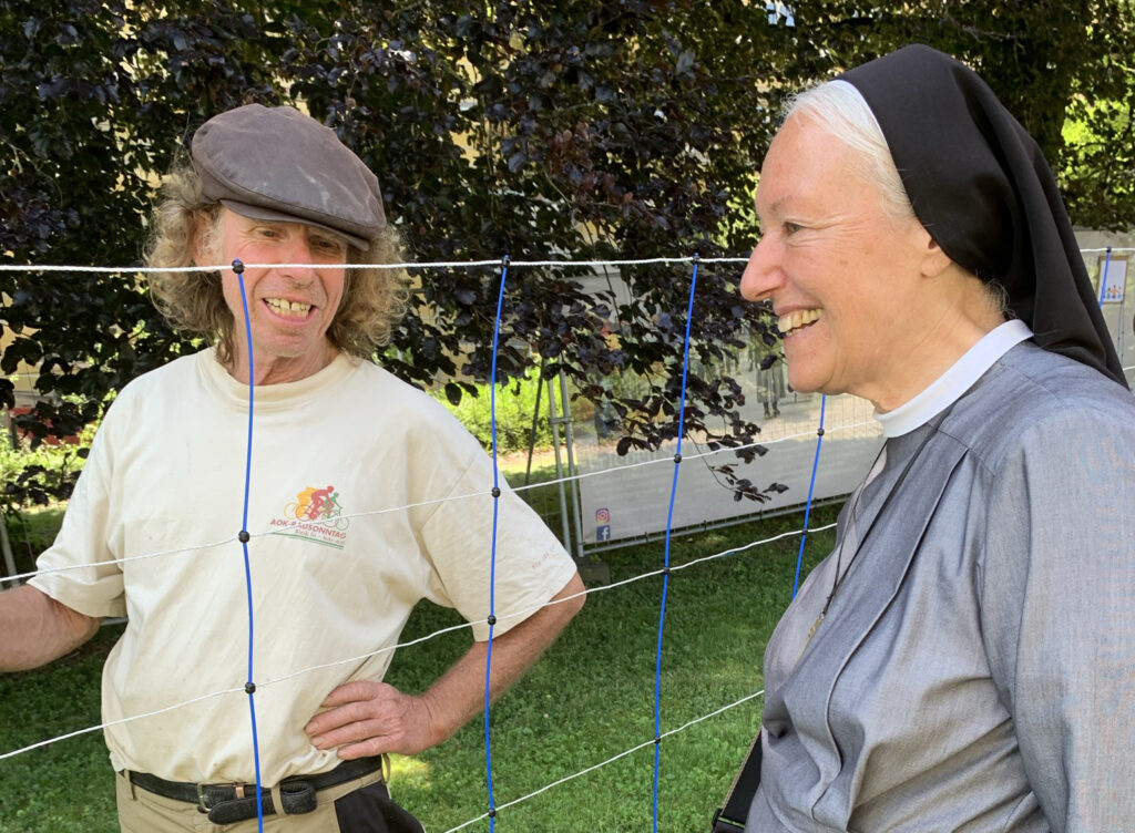 Reute – Zum zweiten großen Baustellentag erwarteten die Franziskanerinnen, von ihnen selbst und vom Förderverein perfekt organisiert, zahlreiche Besucher aus Nah und Fern. Ein angenehmer Sommersonnentag trug zusätzlich zum Gelingen der offenen Baustellentüren bei. Nicht nur die Baufortschritte, sondern auch Sr. Birgits Klostergarten, der neu gestaltete Friedhof, die Klosterimkerei, der Klosterladen und Therapietiere gehörten zum abwechslungsreichen Tagesprogramm. In der Rosenlaube im Konventgarten konnte man sich mit den Schwestern austauschen, selbstverständlich bei gutem Mittagessen, bei Kaffee und Kuchen oder kalten Getränken.