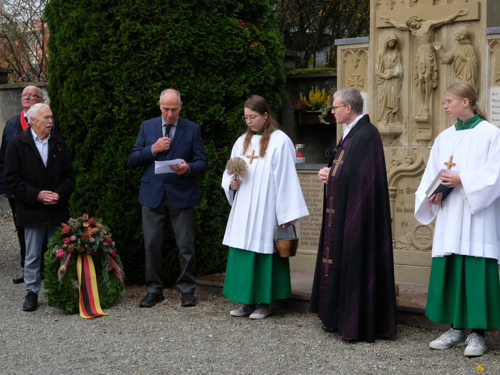 Vorstand Robert Hoch bei seiner Rede am Kriegerdenkmal.