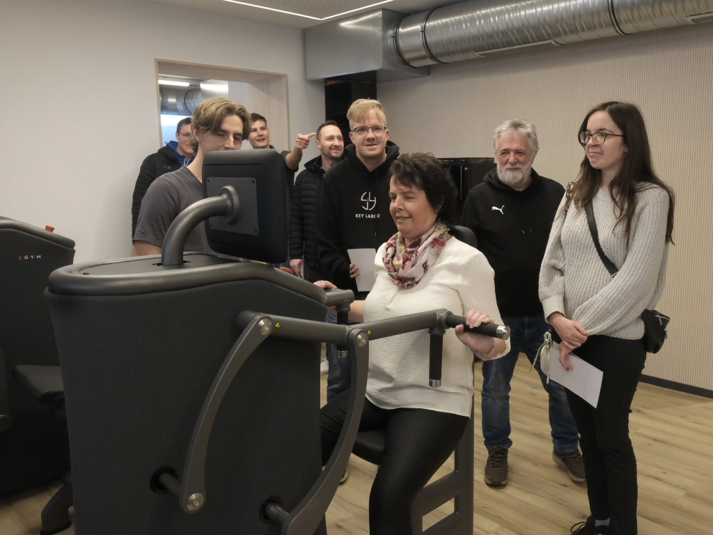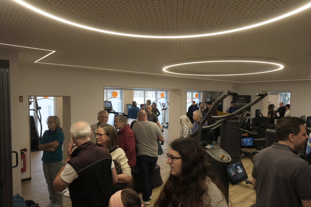 Und so kam es, dass schon kurz nach Beginn des Events die Parkmöglichkeiten fast erschöpft waren und sich viele neugierige Besucher in dem neueröffneten, großen Fitness-Raum um die in elegantem anthrazit gehaltenen High-Tech-Geräte scharten. In diesen hatte Herbert Ringer als Reminiszenz an die Gastwirtschaft „Rosengarten“ seiner Eltern einen Durchgang mit einbauen lassen – dort wo früher die Eingangstür der Gaststube war.