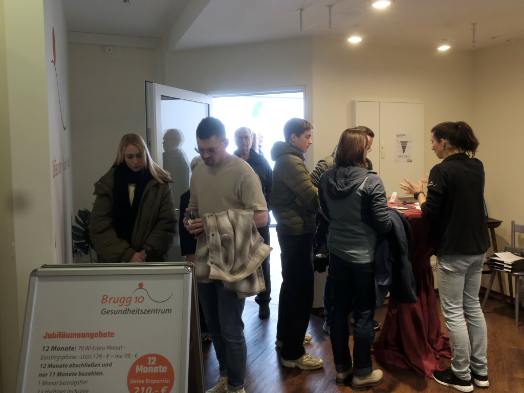 Brugg – Im Jahre 2010 hat Herbert Ringer in Brugg auf dem Gelände der ehemaligen Kegelbahnen des Gasthauses „Rosengarten“ seine Physiotherapie-Praxis aufgebaut. Nach der Schließung des Gasthofes und dem Komplettumbau der ehemaligen Gasträume kann Ringer seinen Patienten und Kunden nun ein stark erweitertes Fitnesszentrum bieten, das technisch und organisatorisch top ist. Am vergangenen Sonntag (1.3.) luden er und seine 14 Mitarbeiter die Öffentlichkeit zu einem Tag der offenen Tür ein. Es gab einen regelrechten Ansturm Interessierter.