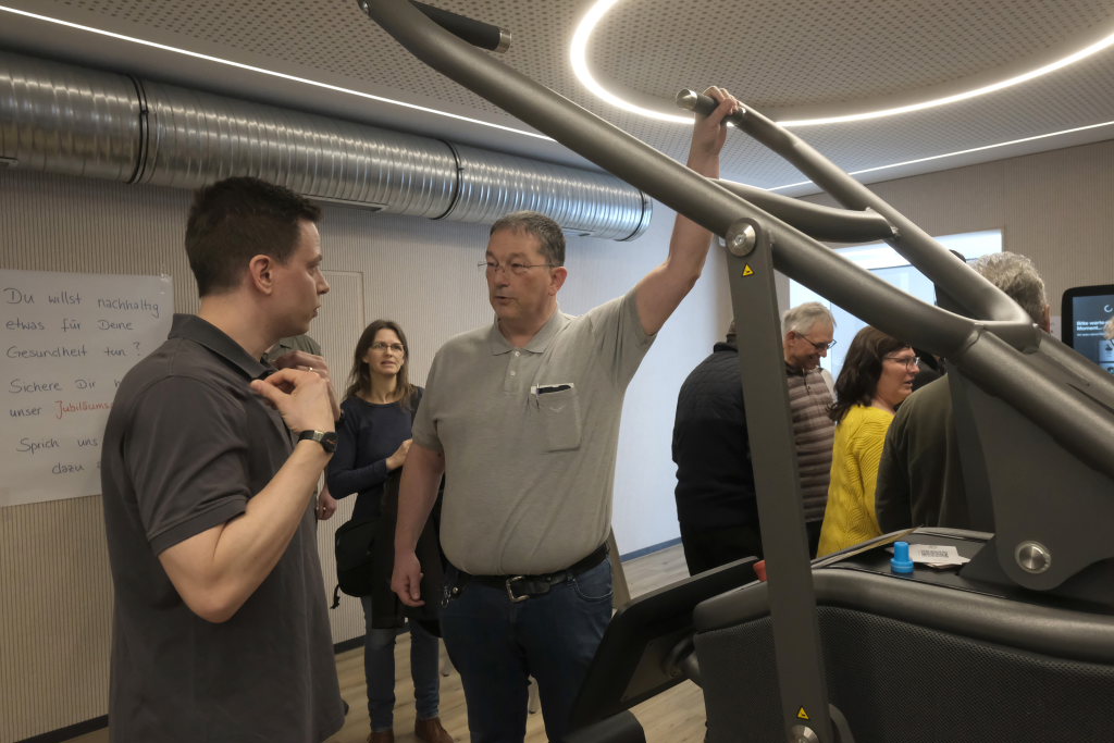 Aber auch die „inneren Werte“ – sprich Herz und Kreislauf – kommen in dem neuen Fitnessraum nicht zu kurz. Und wer die Jubiläumsangebote nutzte und gleich einen Vertrag abschloss, konnte dabei gutes Geld sparen. Und durch den täglich von 6.00 Uhr morgens bis 22.00 Uhr abends geöffneten – vom Therapiezentrum getrennten – Eingangsbereich können die Trainierenden praktisch kommen, wann es ihnen gefällt.