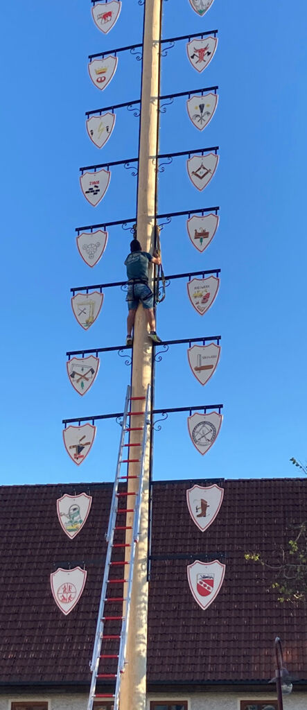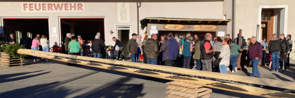 Das Maibaumstellen eröffnet die Freiluftsaison und alle freuen sich auf Frühling und Sommer. Heuer war es ein „neuer“ Maibaum. Alle fünf, sechs Jahre muss er ersetzt werden, erläutert Reinhold, sonst wird er zu trocken und somit „brüchig“: Er muss es wissen: Als Sägewerksbesitzer ist er ein Holzfachmann.