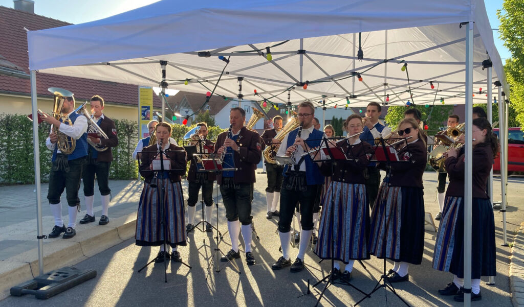 Für die musikalische Umrahmung des Maibaumstellens sorgte eine kleinere Besetzung des Arnacher Musikvereins.