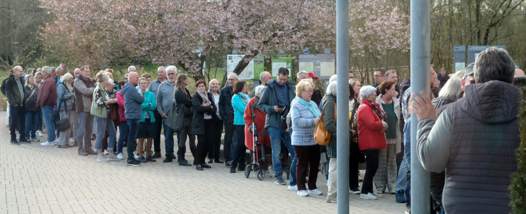 Schlangestehen am Kurhaus vor Saalöffnung.