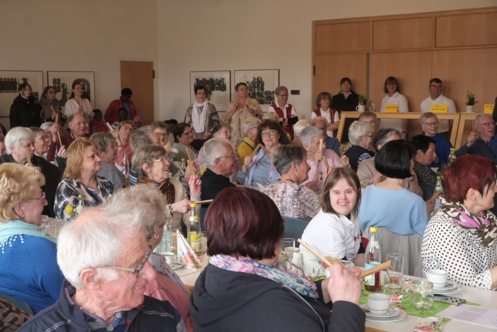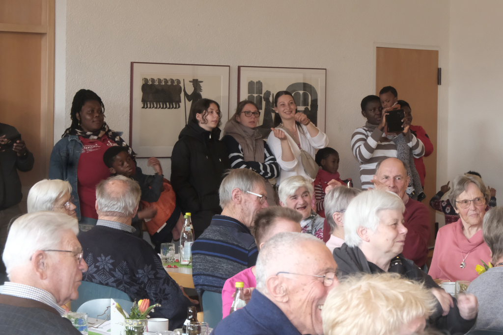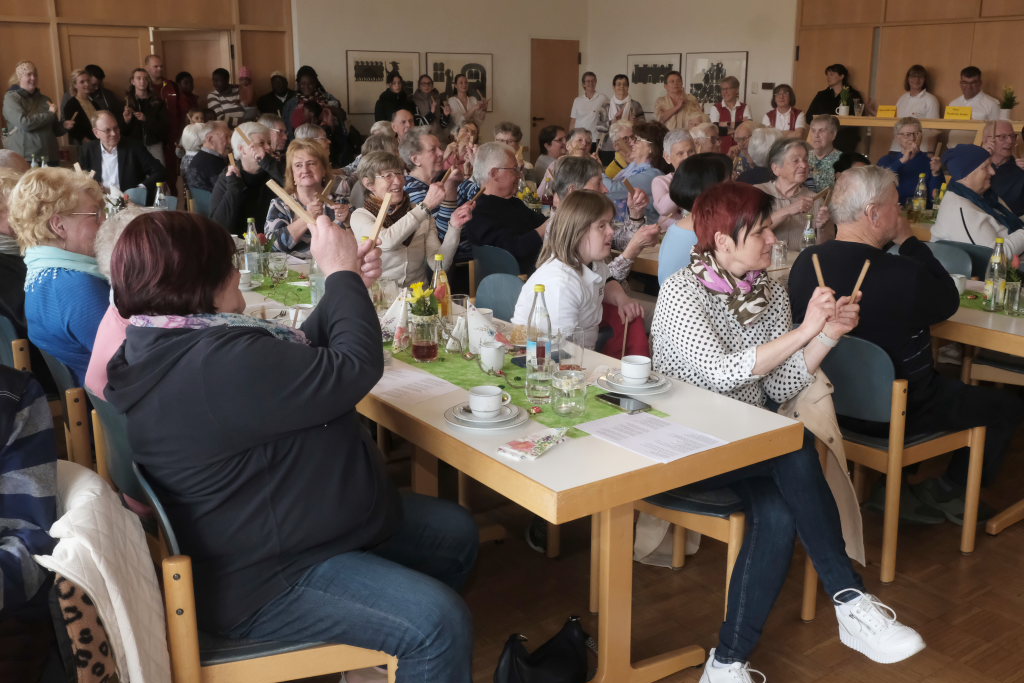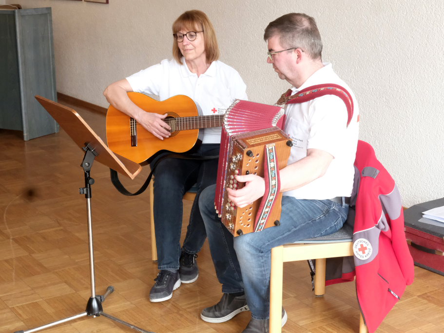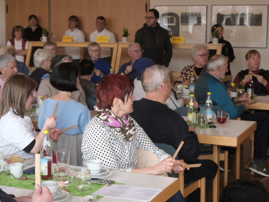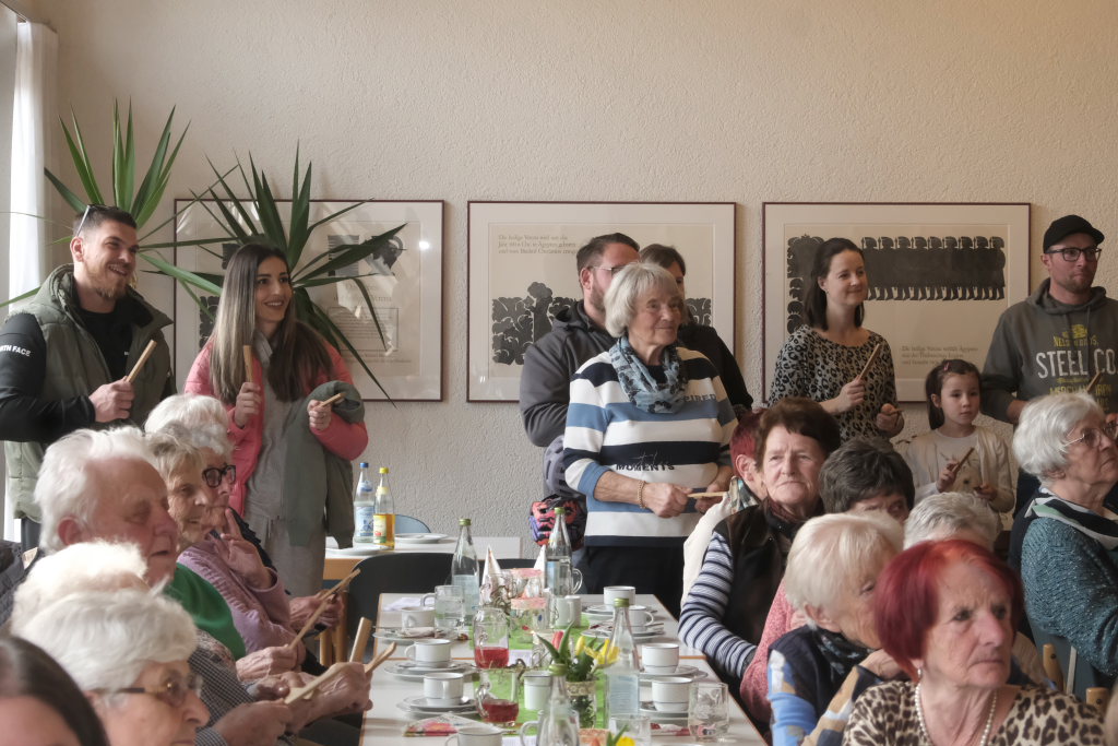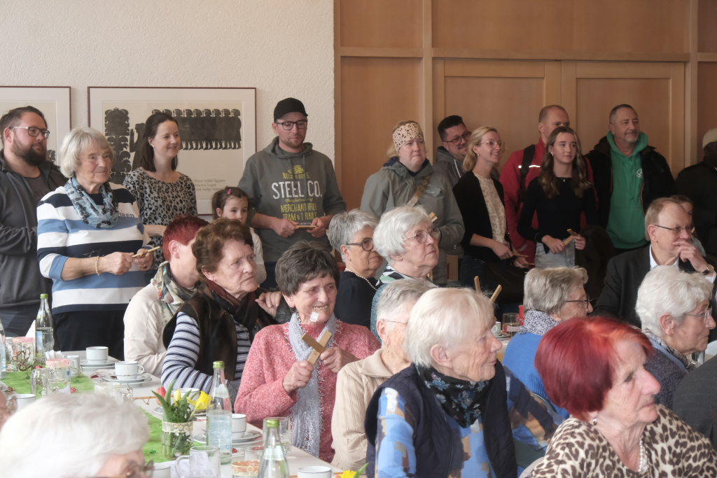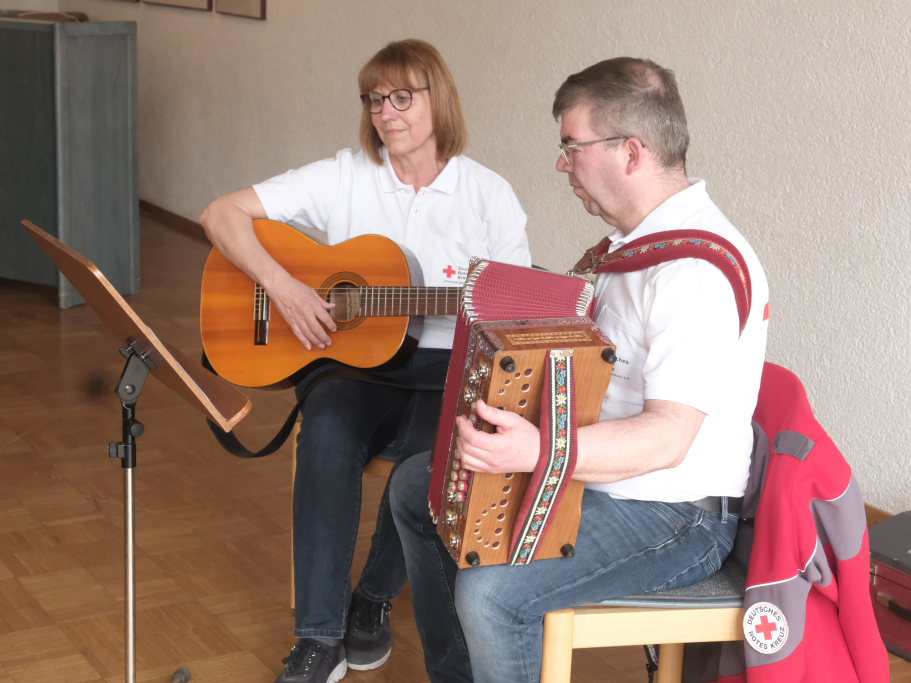 Frank Fässler an der Steirischen Harmonika und Conny Schmid an der Gitarre sorgten für die musikalische Begleitung. Ins gemeinsame Singen starteten sie traditionell mit dem klassischen Frühlingslied: „Im Märzen der Bauer“. Die Besucher, darunter auch Bürgermeisterin Alexandra Scherer, Mitglieder des Stadtseniorenrates, Robert Stützle und Franziska Link-Bodenmüller von der Bürgerstiftung sowie die evangelische Pfarrerin Cora Böttiger sangen selbst fleißig mit.