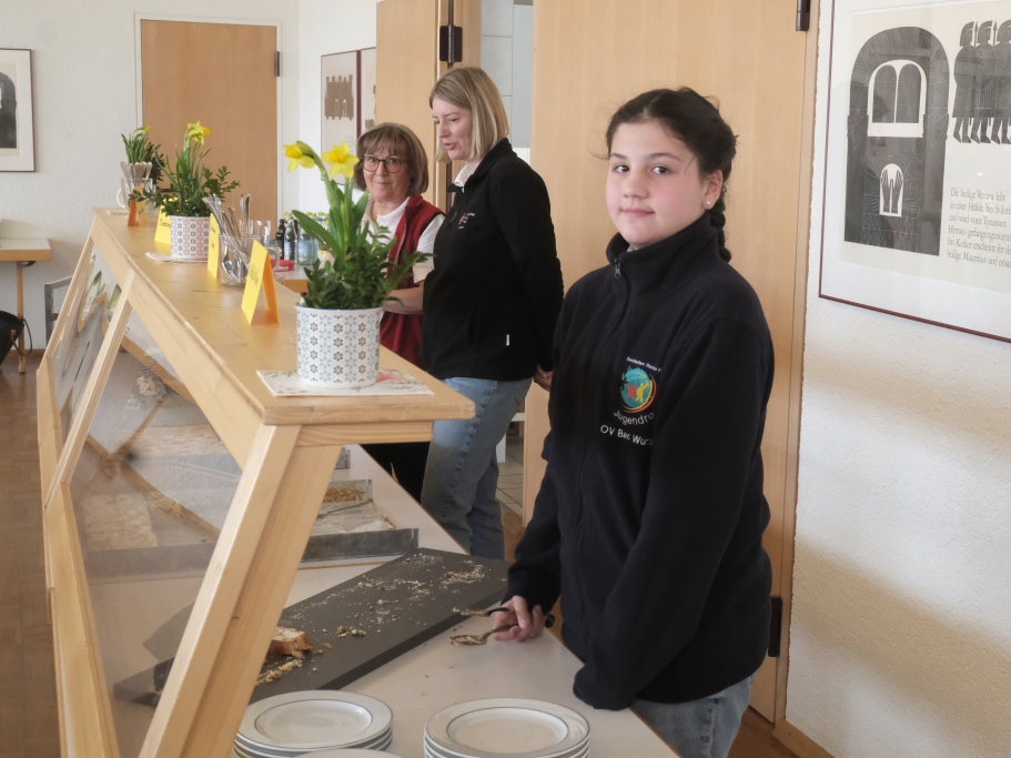 Gemeinsam mit einigen Jugendrotkreuzlern wuselten die DRK-Mitglieder aus Bad Wurzach an diesem Samstagnachmittag durch den Saal, um die Gäste an den schön dekorierten Tischen mit Kaffee und Kuchen sowie anderen Getränken zu versorgen.