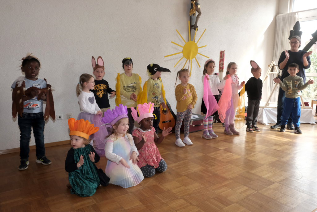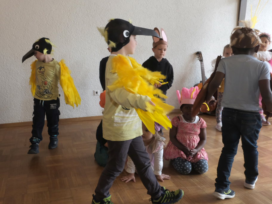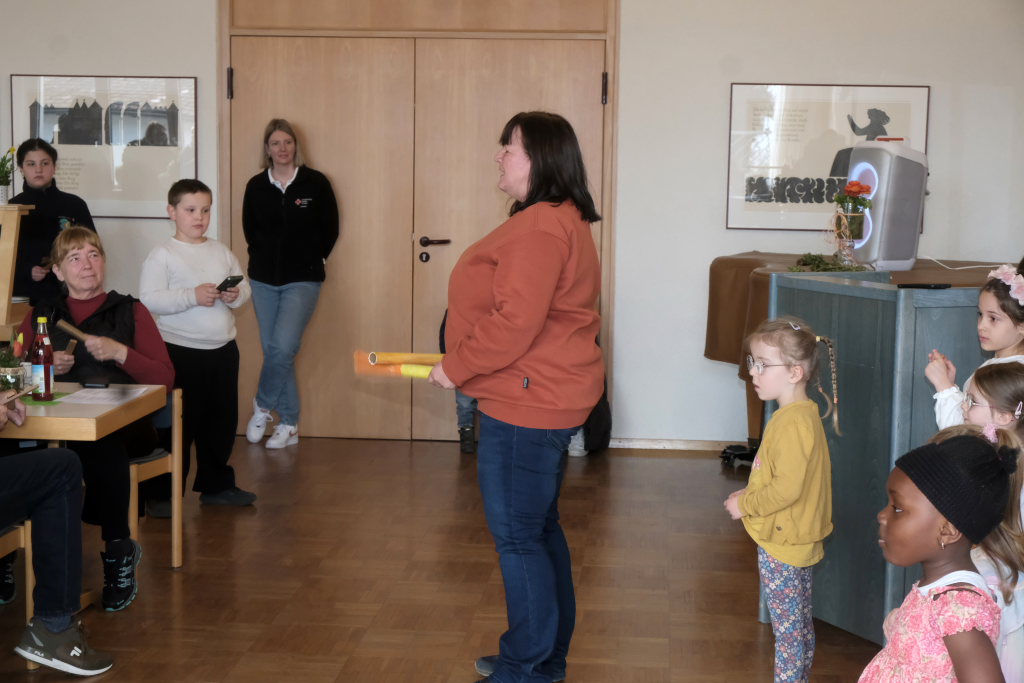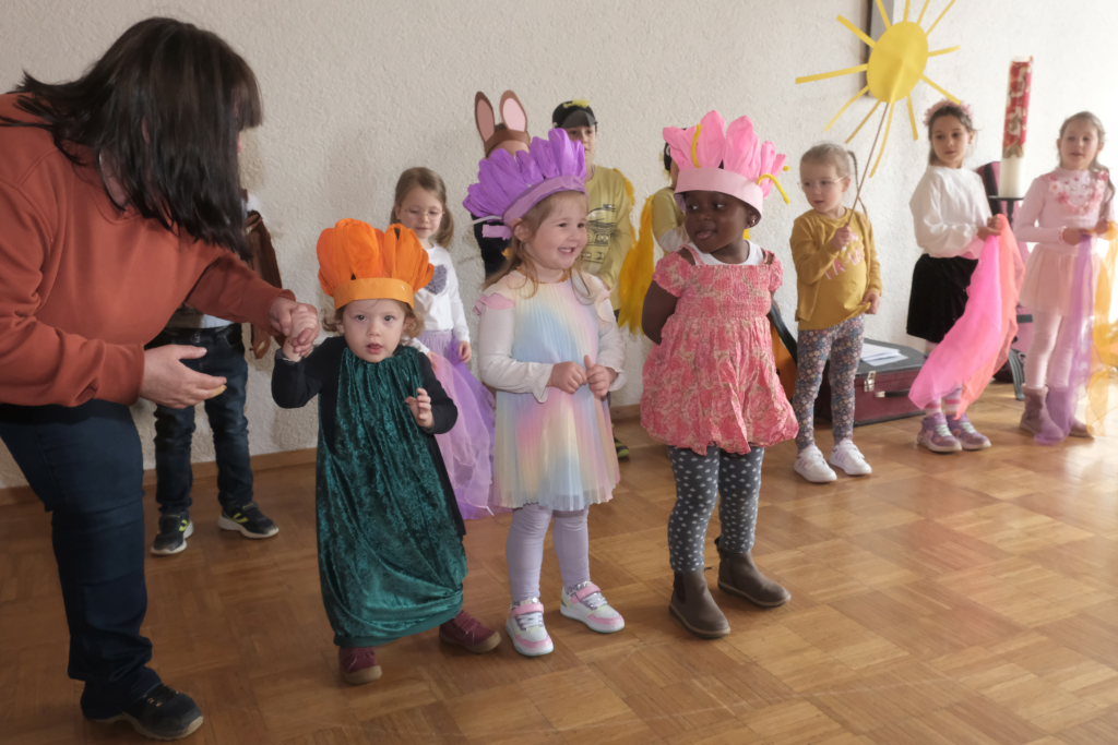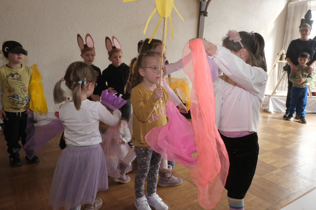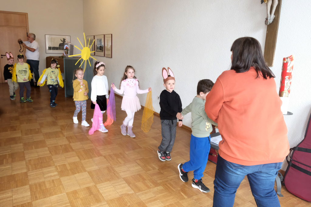 Was lag näher, nachdem es seit dem 1. Januar in Bad Wurzach einen DRK-Kindergarten mit dem Namen Kunterbunt gibt, diesen für eine Gesangs -und Tanzeinlage zum Frühlingscafé einzuladen. Diese kamen in liebevoll gestalteten Kostümen, als blühende Krokusse, summende Bienen und Hummeln oder als Osterhasen ,um den Frühlingsanfang zu begrüßen. Und um als Zugabe gemeinsam mit den Senioren mit dem Gute-Laune-Lied selbige zu verbreiten.