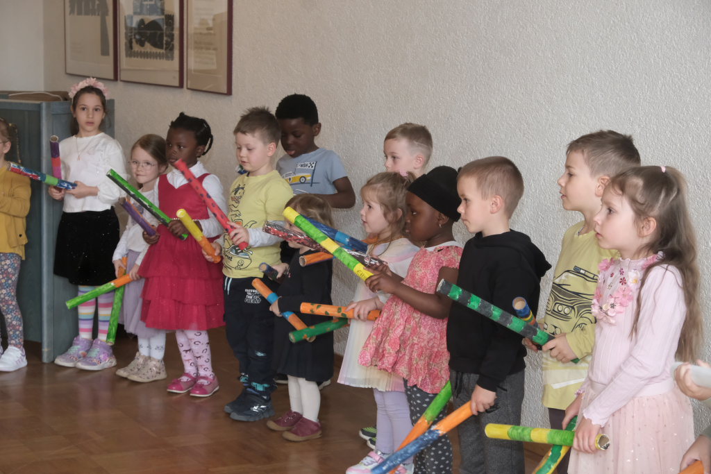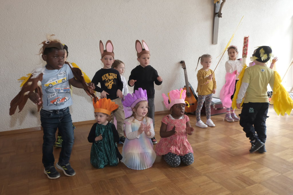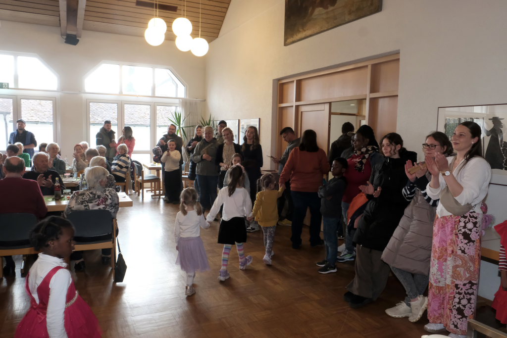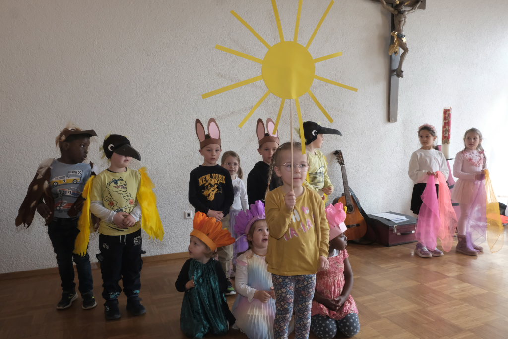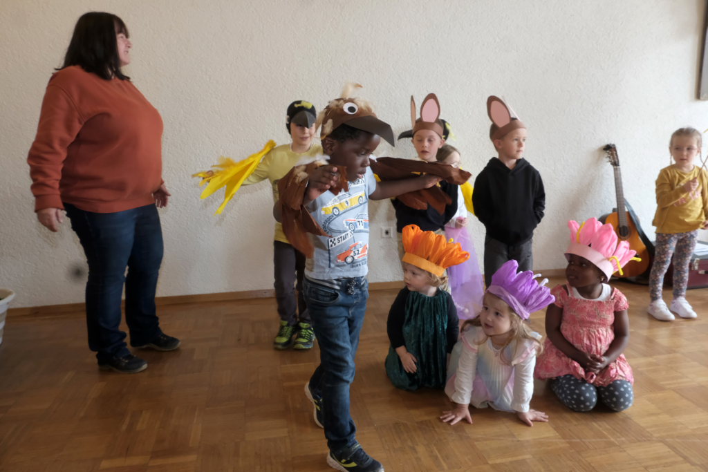 Was lag näher, nachdem es seit dem 1. Januar in Bad Wurzach einen DRK-Kindergarten mit dem Namen Kunterbunt gibt, diesen für eine Gesangs -und Tanzeinlage zum Frühlingscafé einzuladen. Diese kamen in liebevoll gestalteten Kostümen, als blühende Krokusse, summende Bienen und Hummeln oder als Osterhasen ,um den Frühlingsanfang zu begrüßen. Und um als Zugabe gemeinsam mit den Senioren mit dem Gute-Laune-Lied selbige zu verbreiten.