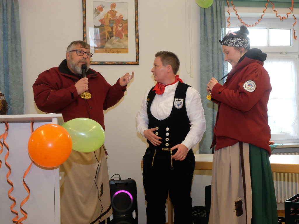 Die Pflichten waren denn auch schnell abgearbeitet, und so konnte Ewald Bodenmüller auch kurz danach den Kollegen aus den Reihen der Zunftmeister stolz das KI-generierte Eintürner Narrenlied vorspielen. Aber nicht nur das: Auch ein eigenes Gedicht hat die Narrenzunft „Bockland“ Eintürnen jetzt vorzuweisen, dass – ebenfalls im Rahmen des Zunftmeisterempfangs – von Diana Tant vorgetragen wurde.