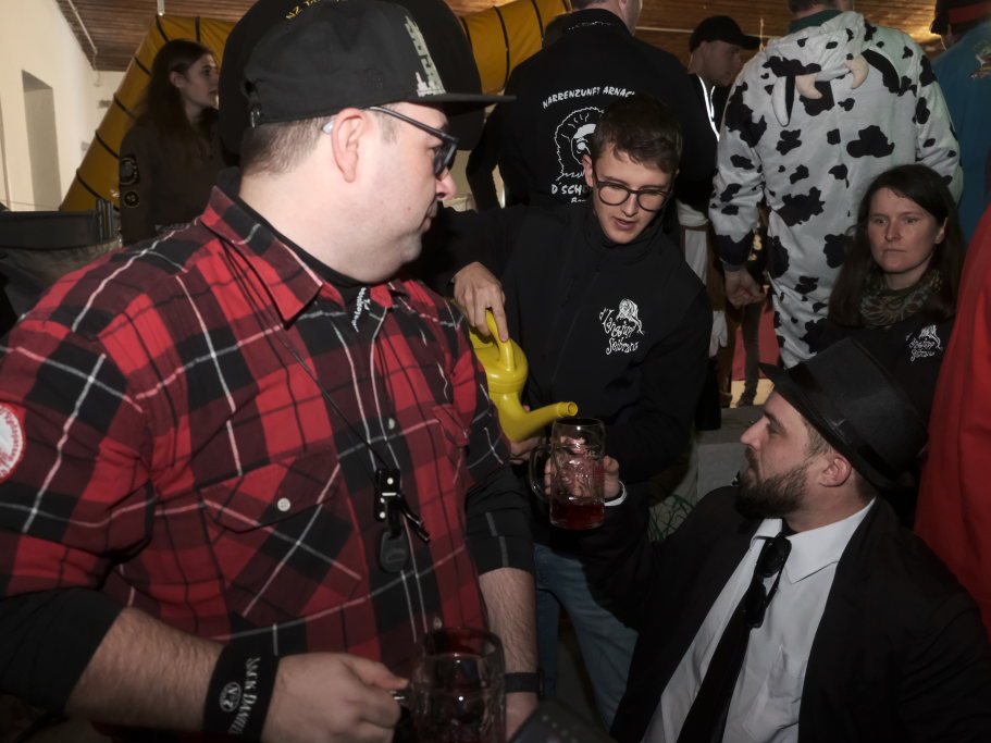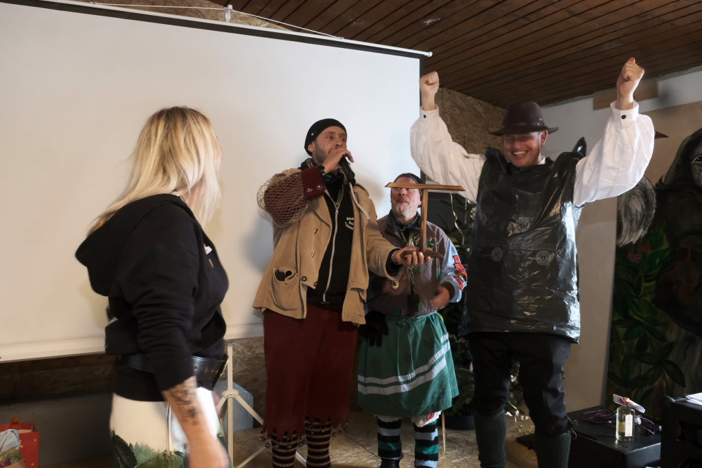 Seibranz – Bereits zum siebten Mal veranstaltete die Seibranzer Narrenzunft um Zunftmeister Willi „WilliBu“ Butscher einen Narrensprung. Beim Zunftmeisterempfang – erstmals nicht in der Festhalle, sondern in der „zweiten Heimat“ der Zunft, im ehemaligen Stall der Familie Menig in Seibranz-Ösch – stellten die Langjuppen nun ihre zweite Figur, den „Wandersmann“ der närrischen Öffentlichkeit vor.
