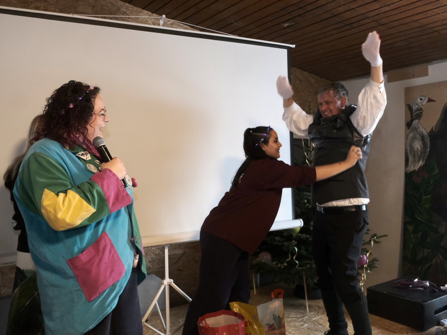 Apropos Narrensoma: Daniel Wassner, der Haidgauer Zunftmeister, verriet im Rahmen seines Beitrages, dass dieser bei den Langjuppen derzeit bei einer rekordverdächtigen Zahl von 73 liegt. Als Gastgeschenk hatte er deswegen Süßigkeiten für die Kleinen mitgebracht. Mit den Großen ging er härter ins Gericht: Für sie hatte er eine Fernsehzeitschrift und Kondome mitgebracht, damit diese sich trotz der harten Winter in dieser Gemeinde auch noch mit etwas anderem beschäftigen konnten…