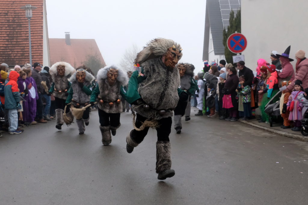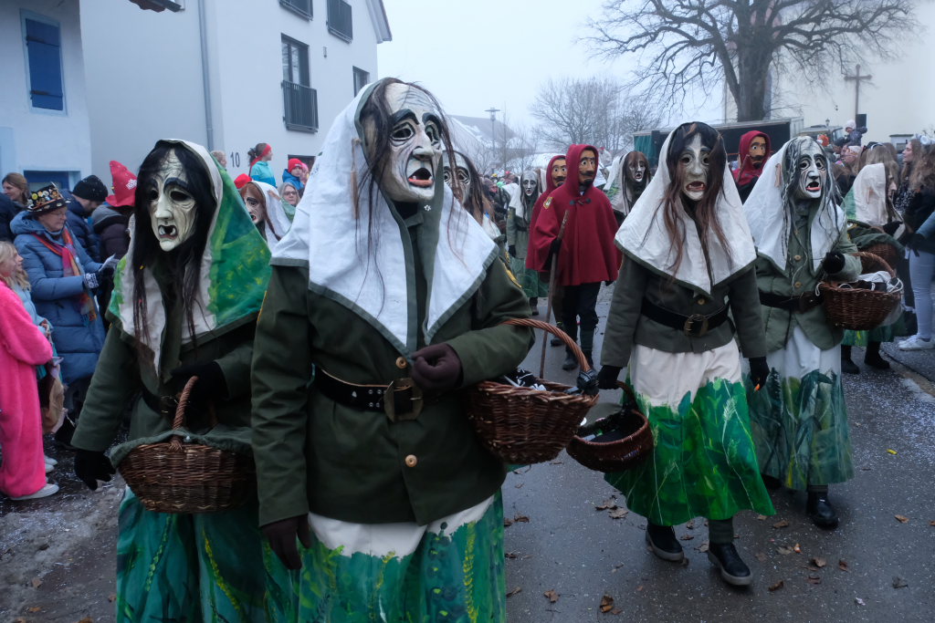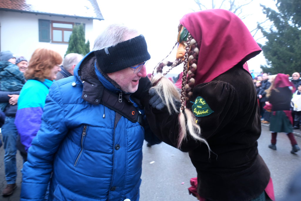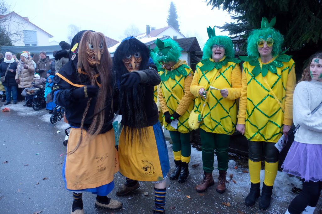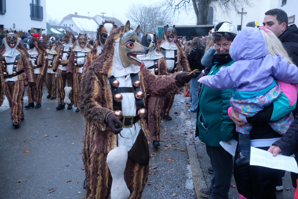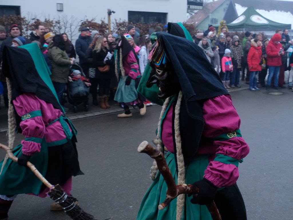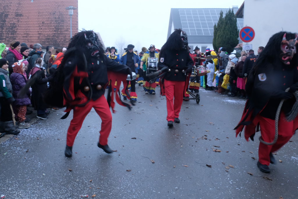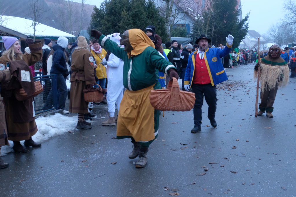 Dazu bereicherten viele Zünfte aus der Region wie Immenried, Alttann, Wolfegg, Waltershofen oder Aichstetten das närrische Geschehen auf den Straßen von Arnach. Erstmals in dieser Saison auf den Umzügen zu sehen sind die „Krähen“ aus Diepoldshofen mit ihrem Narrenspruch „D´Kräh isch munter – Tanzlaub goht unter“.