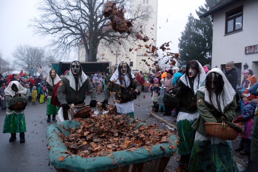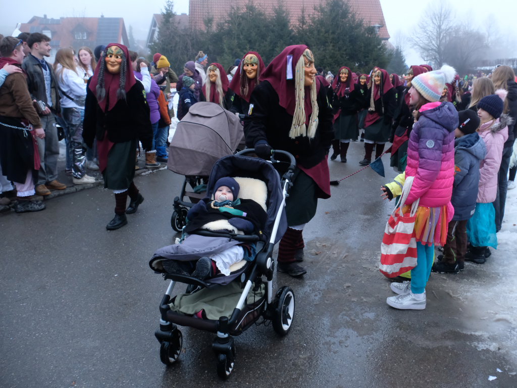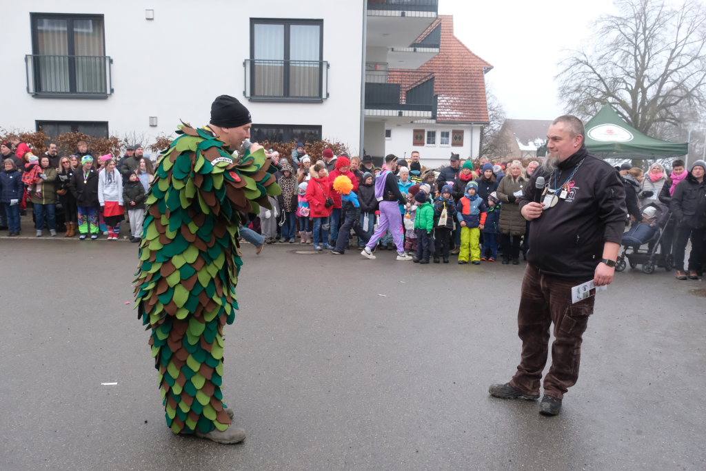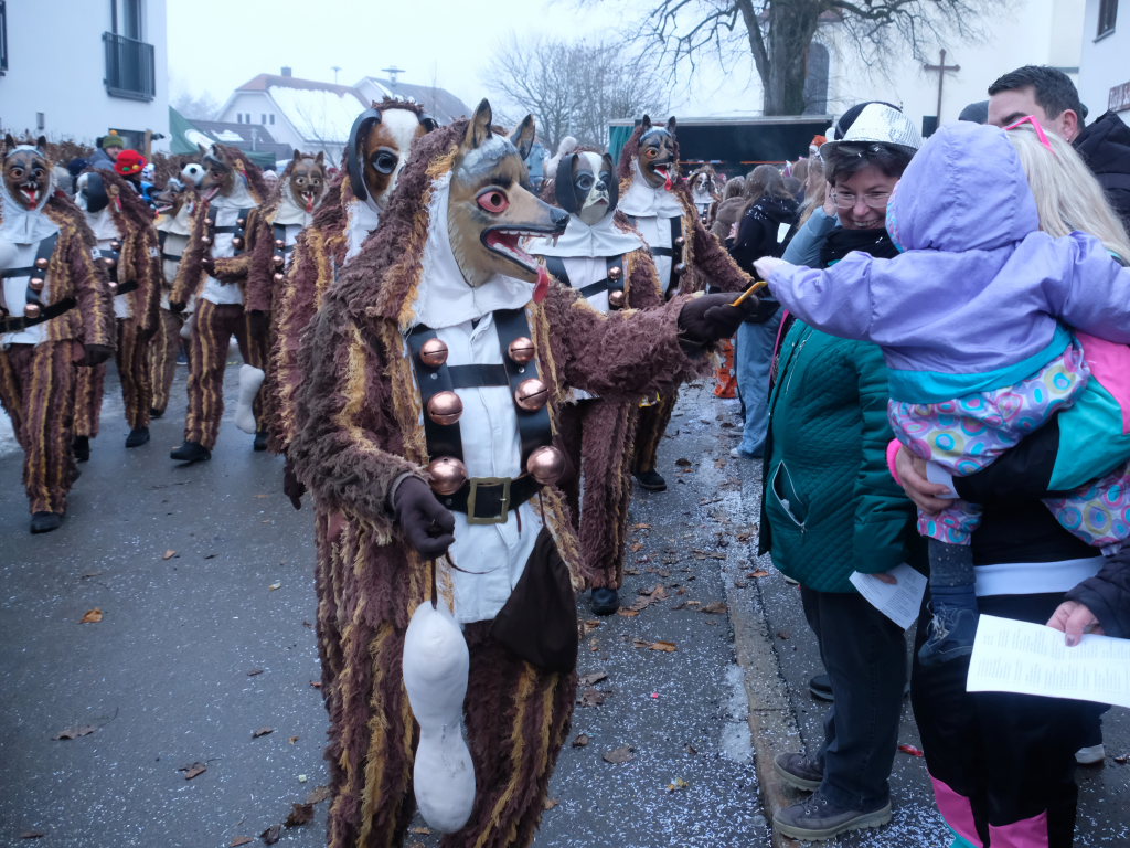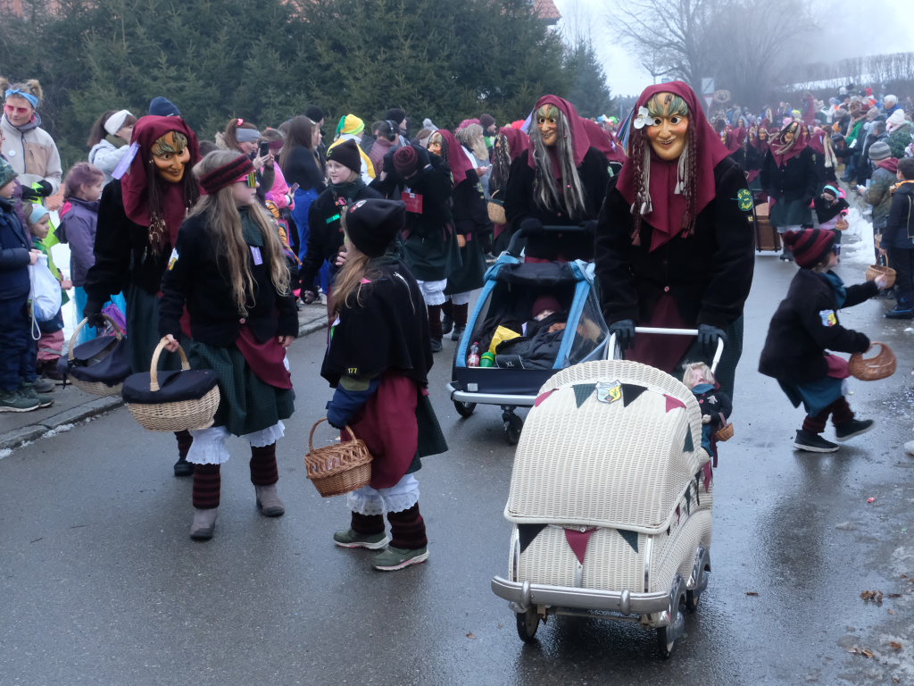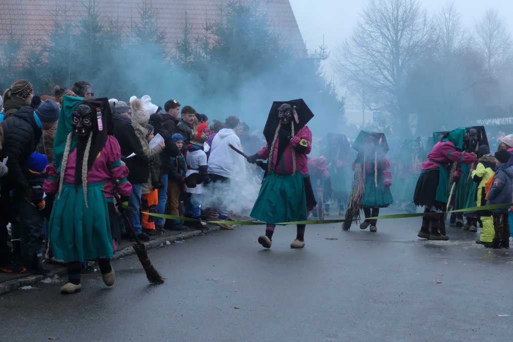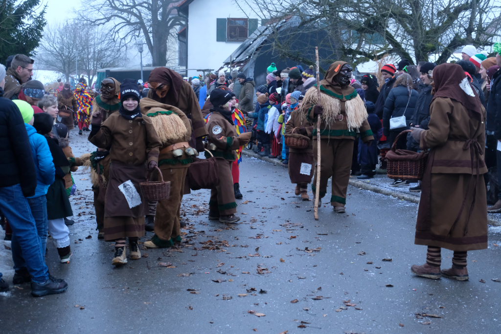 Dazu bereicherten viele Zünfte aus der Region wie Immenried, Alttann, Wolfegg, Waltershofen oder Aichstetten das närrische Geschehen auf den Straßen von Arnach. Erstmals in dieser Saison auf den Umzügen zu sehen sind die „Krähen“ aus Diepoldshofen mit ihrem Narrenspruch „D´Kräh isch munter – Tanzlaub goht unter“.