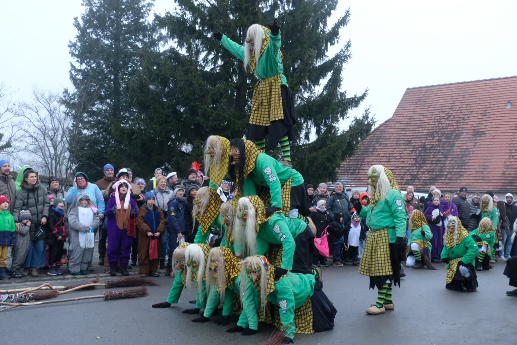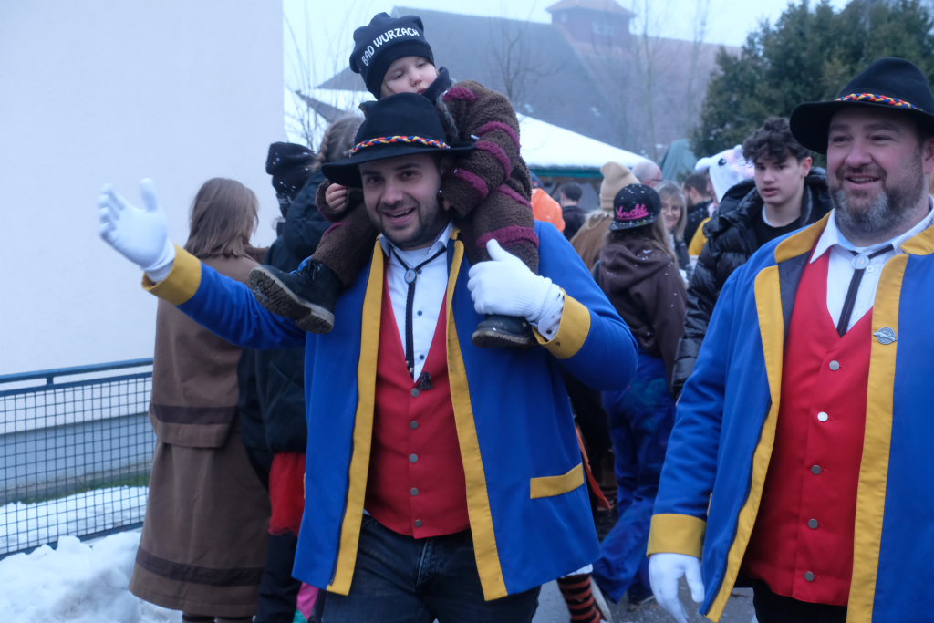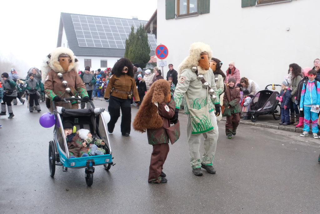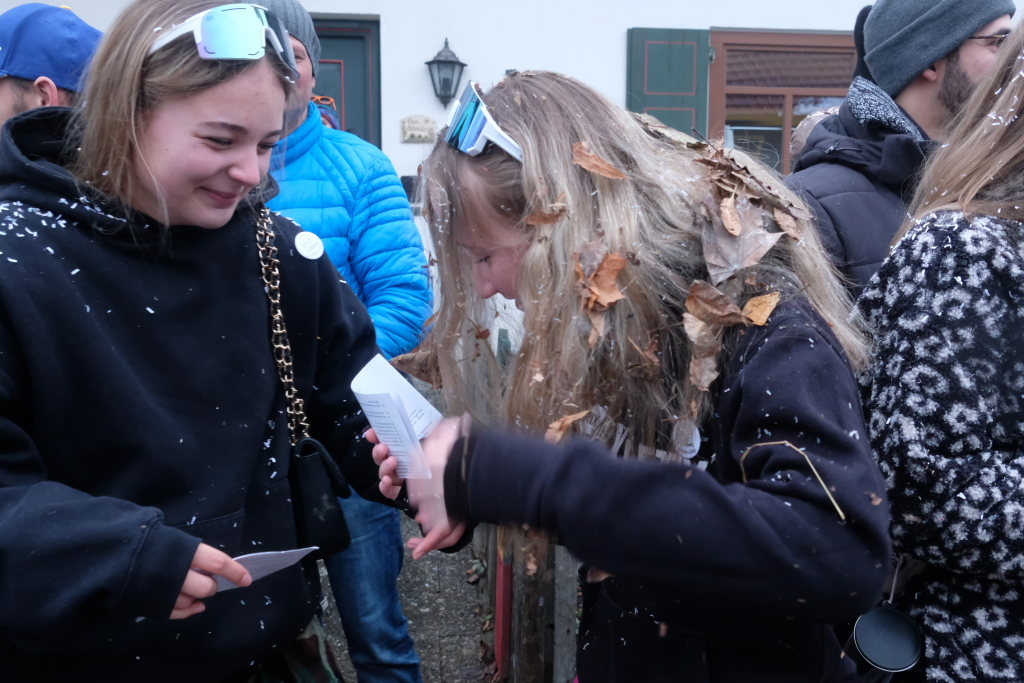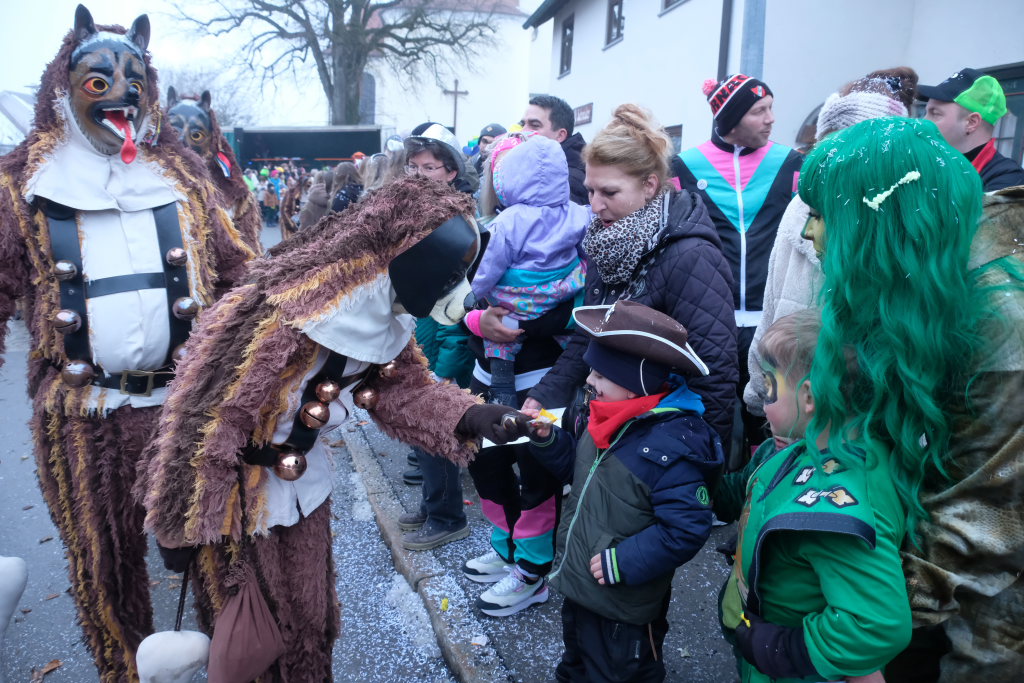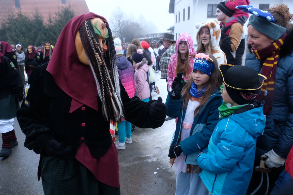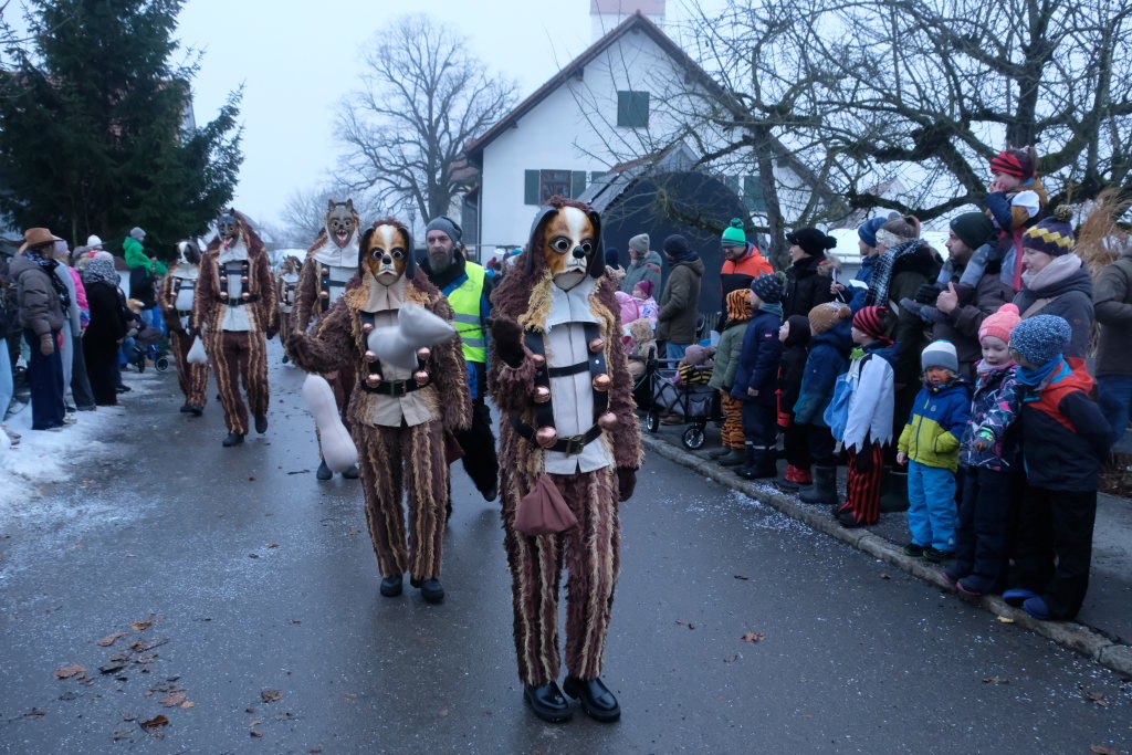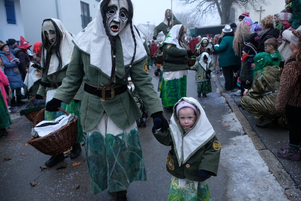 Dazu bereicherten viele Zünfte aus der Region wie Immenried, Alttann, Wolfegg, Waltershofen oder Aichstetten das närrische Geschehen auf den Straßen von Arnach. Erstmals in dieser Saison auf den Umzügen zu sehen sind die „Krähen“ aus Diepoldshofen mit ihrem Narrenspruch „D´Kräh isch munter – Tanzlaub goht unter“.