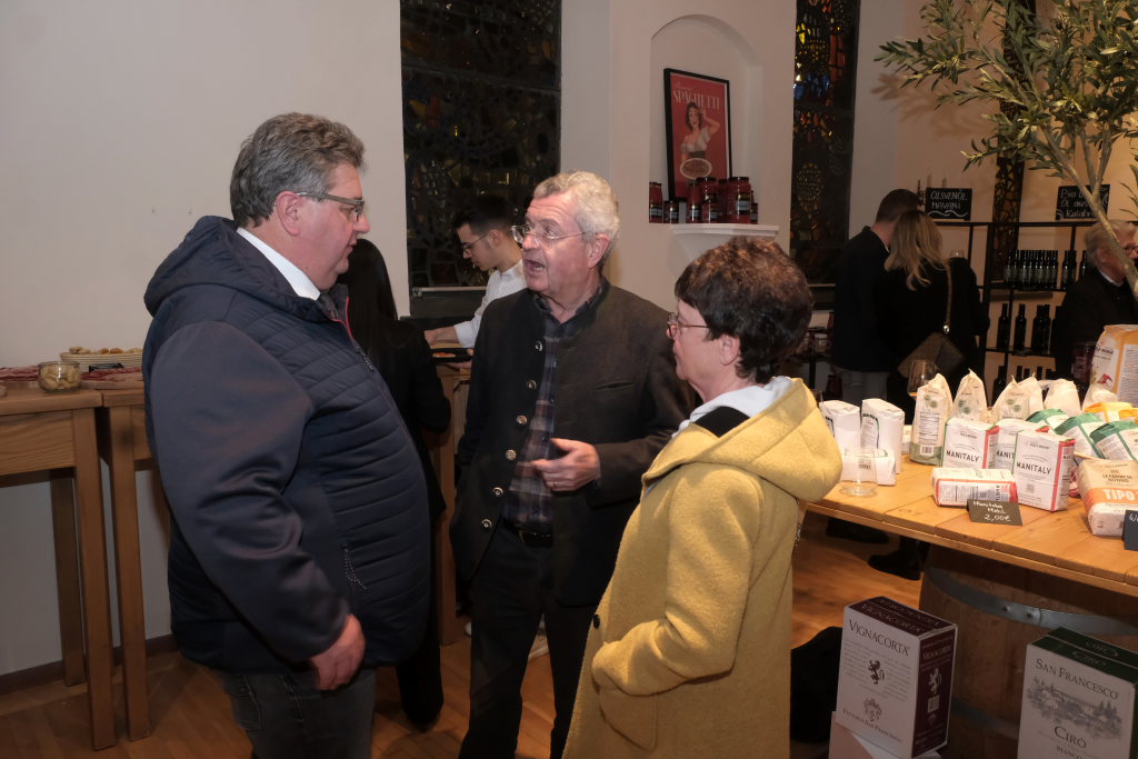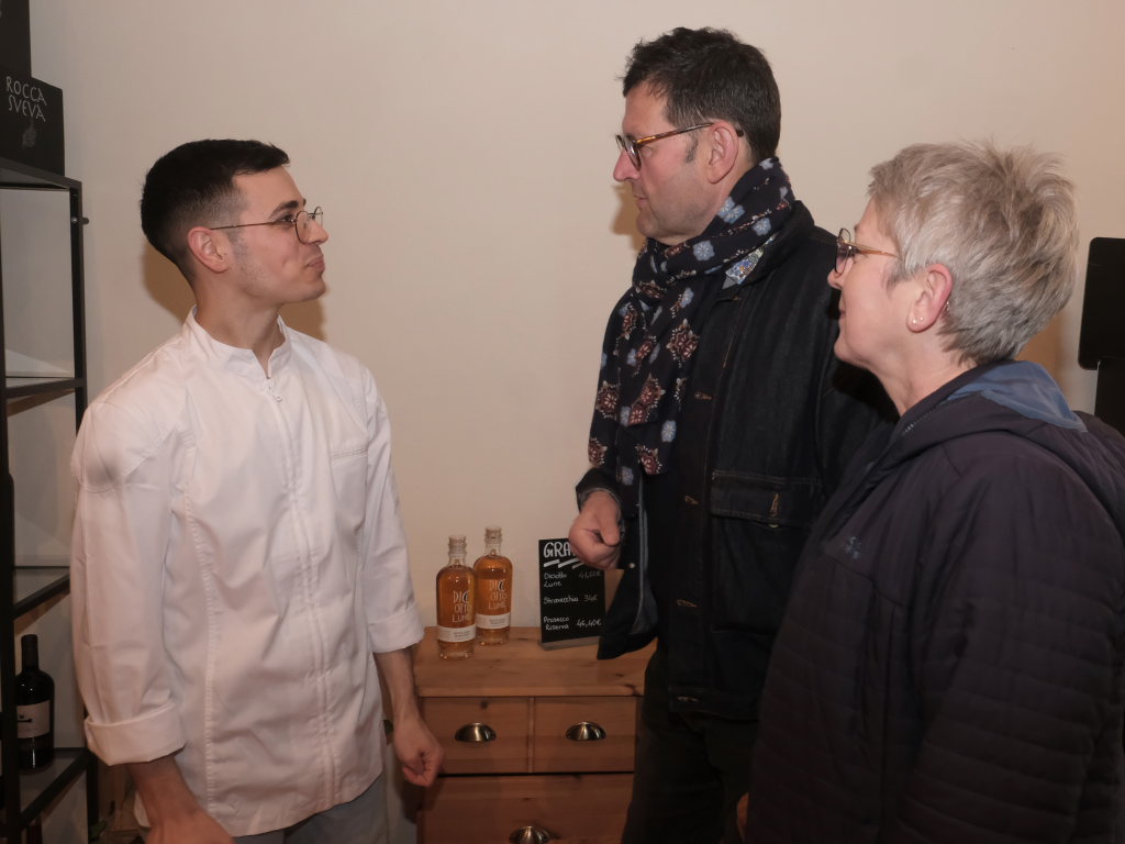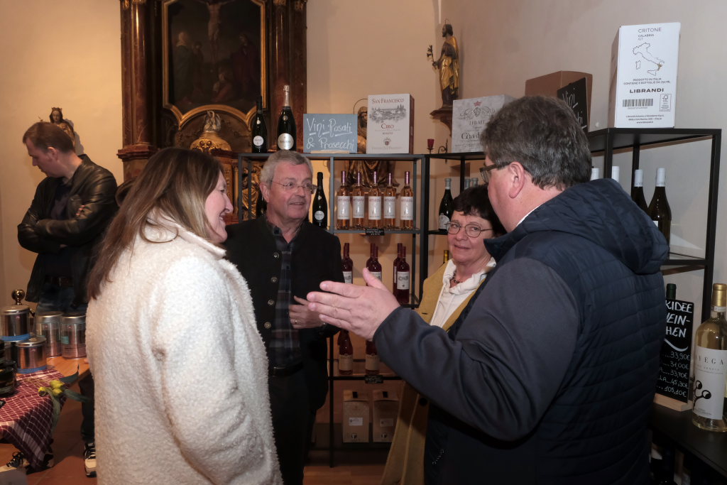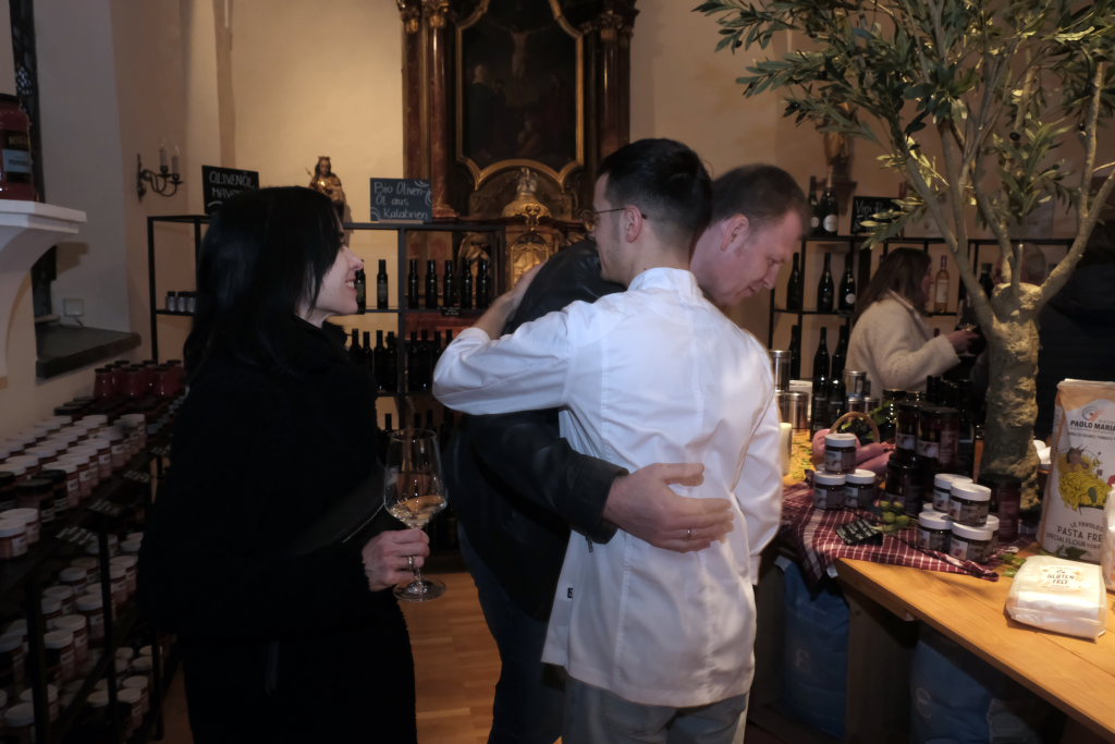 Bad Wurzach – In Bad Wurzach öffnete am verkaufsoffenen Sonntag erstmals der an die Osteria Mavani angeschlossene neue Feinkostladen in der Spitalkapelle seine Türen. Das junge Pächterpaar lud am Freitagabend einen kleine Kreis zu einer besonderen Vorpremiere ein.