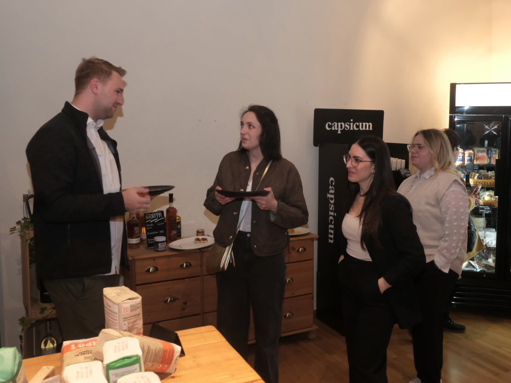 In einer kurzen Präsentation zeigte Valeria Greco, aus welchen Gegenden ihres Heimatlandes sie ihre Produkte beziehen. Ihre Italienreise beginnt in Kalabrien, „dort wo unsere Wurzeln liegen“. Von dort stammen die Tomatensaucen und Olivenöle, die den beiden weit mehr bedeuten als Zutaten. „Das sind Aromen unserer Kindheit.“ „Die Olivenöle stammen von Familien, die wir seit Jahrzehnten kennen und denen wir vertrauen.“ Wenn sie zu Hause kochen, verwendeten sie genau diese Produkte, „nicht aus Gewohnheit, sondern aus Überzeugung.“ Aus Kampanien bezieht Mavani ihre scharfen Capsicum-Öle, aus Le Marche ihre verschiedenen, ausgewählten Mehlsorten, die Grundlage für viele Gerichte wie Pizza, Pasta oder Brot sind.
