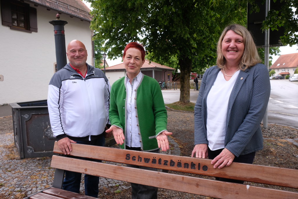 Bürgermeisterin Alexandra Scherer dankte in ihrem Grußwort für die Einladung zur Einweihung. Auch kleine Dinge wie dieses Schwätzbänkle seien wichtig. „Es ist eine tolle Sache, um Menschen zusammen zu bringen.“ Wer sich darauf niederlasse, bringe zum Ausdruck: „Ich will reden.“ In den Ortschaften werde noch öfter miteinander geredet als in der Stadt. Früher – vor den Zeiten der nicht immer so sozialen Medien – hätten dies die Menschen noch viel öfter getan, nämlich miteinander zu reden. Sie dankte allen, denjenigen, die es aufgestellt hatten, aber auch denjenigen die das Bänkle auch nutzen.
