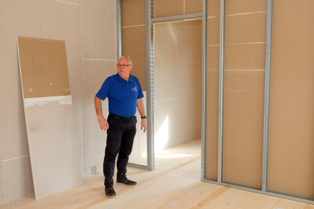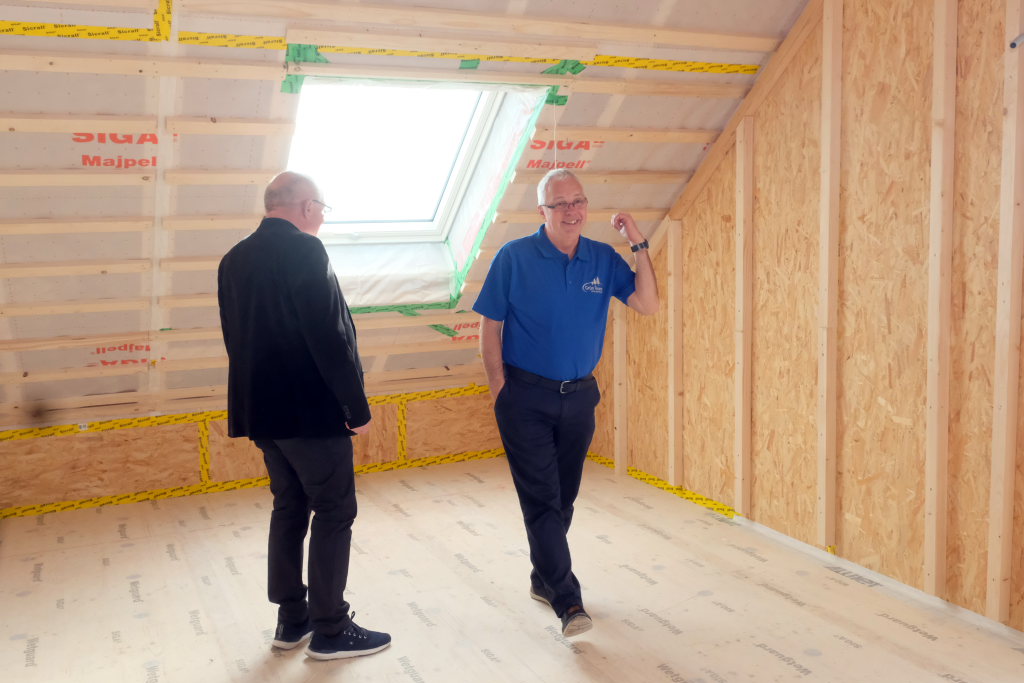 Kreisrat Manfred Lämmle, der mit Michael Bleichner eine Extra-Führung durch den Rohbau erhielt, nannte den Bau ein Vorzeigeprojekt und ebenfalls ein Bekenntnis zum Standort.