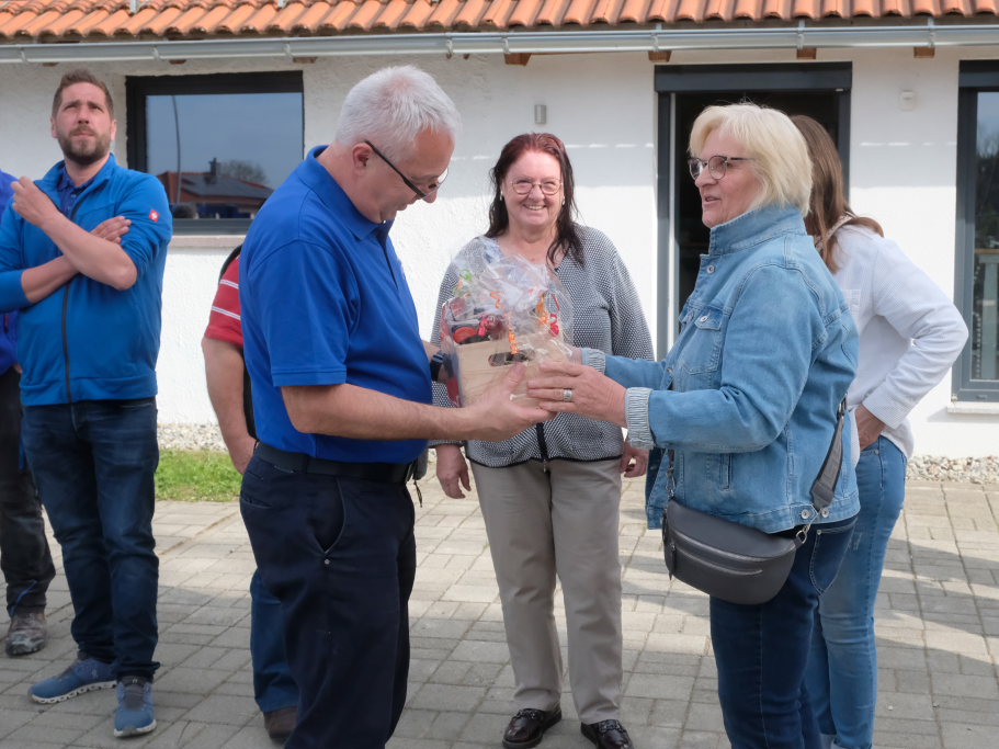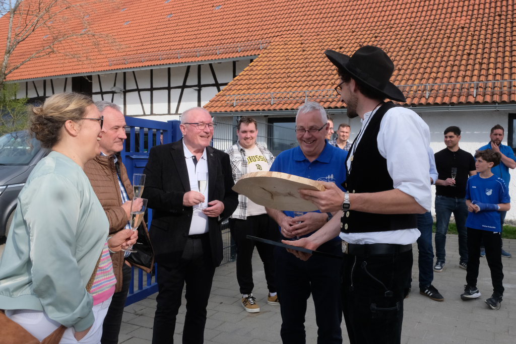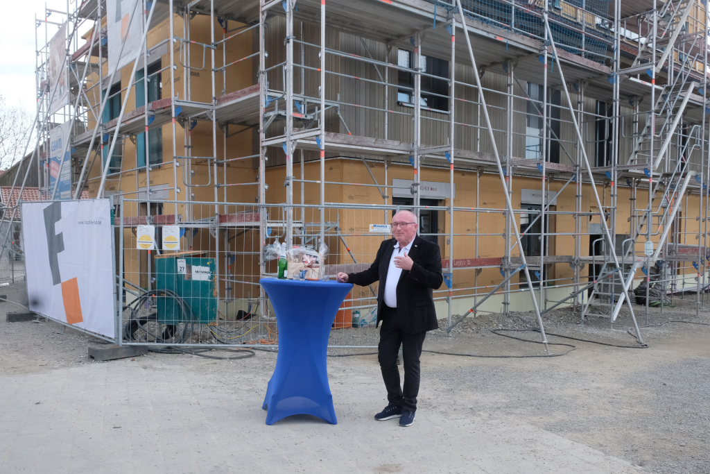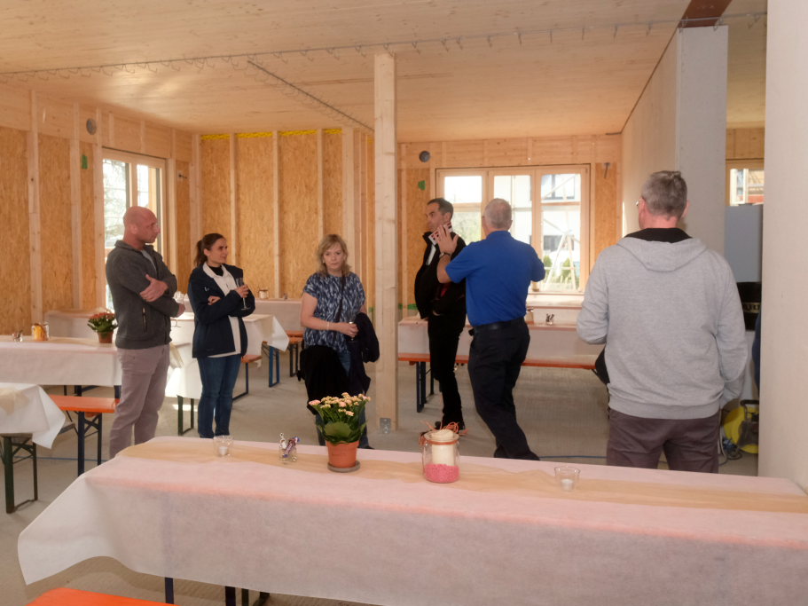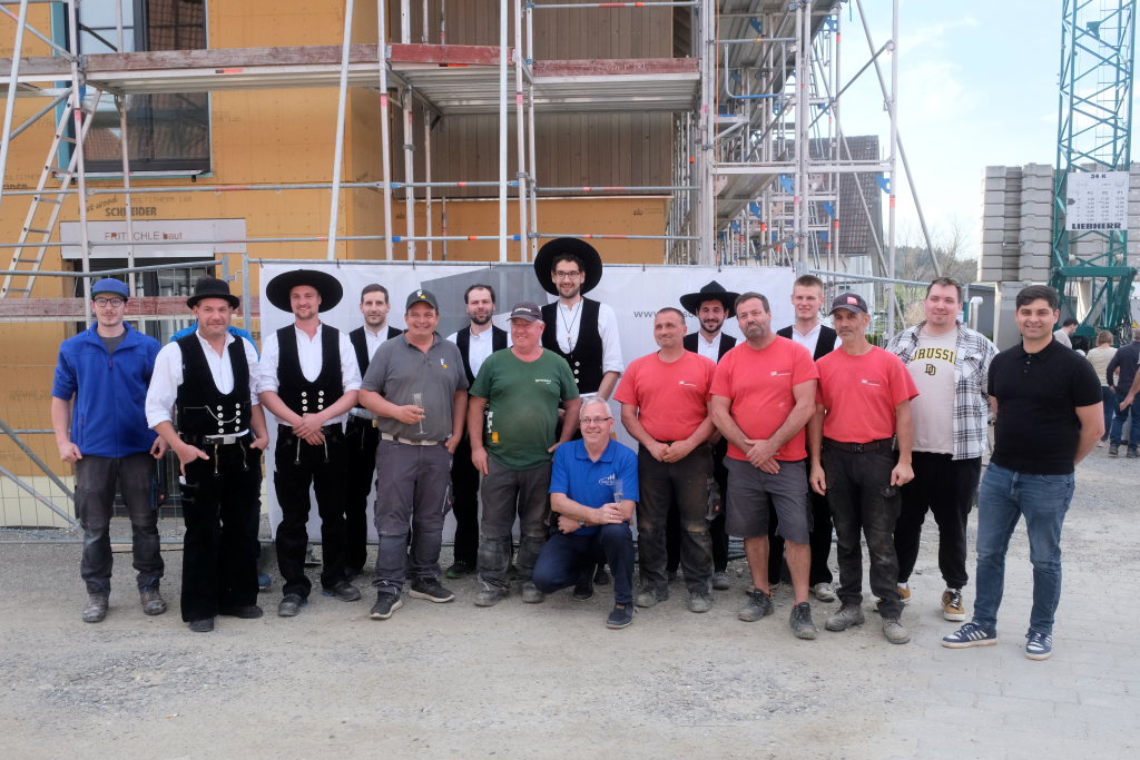 Neben Bürgermeister Guntram Grabherr war auch Manfred Lämmle als Vertreter des Kreistags, Christoph Fritschle, der Geschäftsführer der Baupartnerfirma Fritschle, der als Generalunternehmer für einen reibungslosen Bauablauf gesorgt hatte, zum Richtfest gekommen.