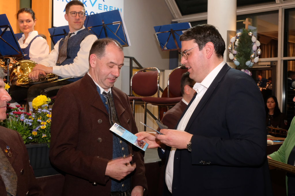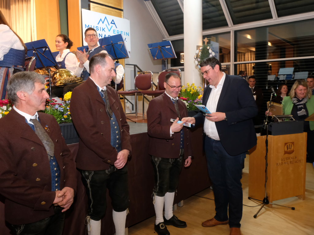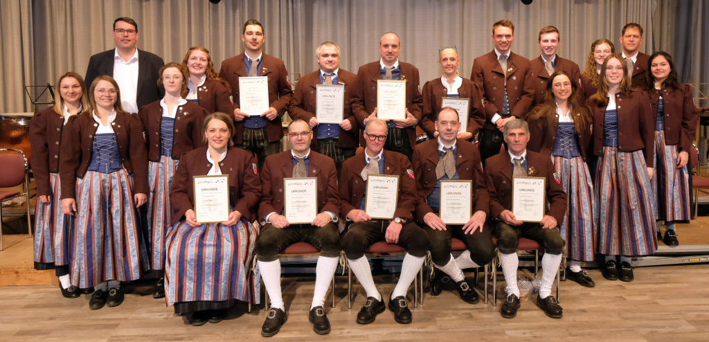 Für 40 Jahre geehrt wurde Georg Buchbinder, der Posaune spielt und seit 1983 aktiv im Verein ist. Er war von 1997 bis 1999 Kassier des Fördervereines. Zugleich ist er seit 2003 bei der Trachtenkapelle Friesenhofen aktiv. Er fährt seit 24 Jahren zu Proben und Auftritten von Friesenhofen nach Arnach.