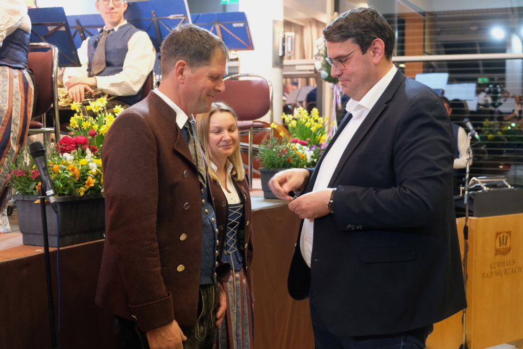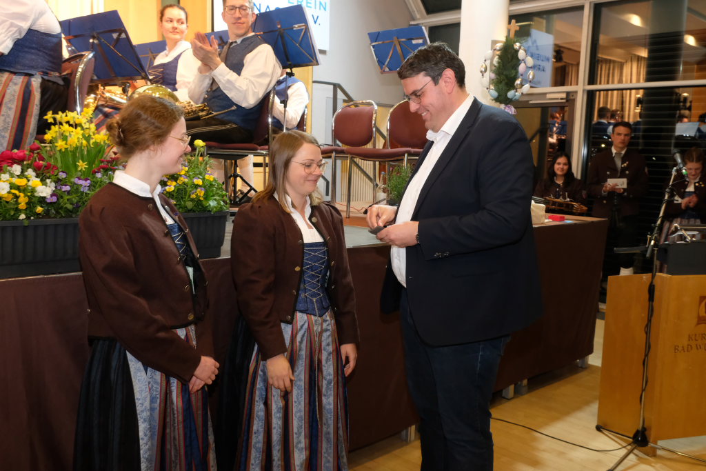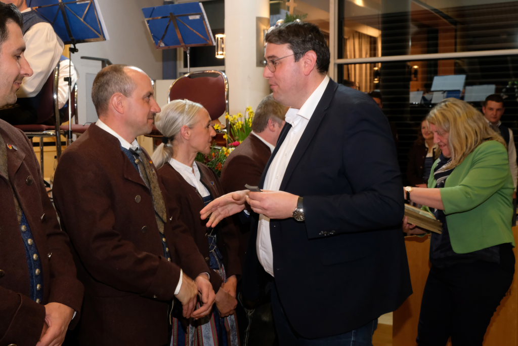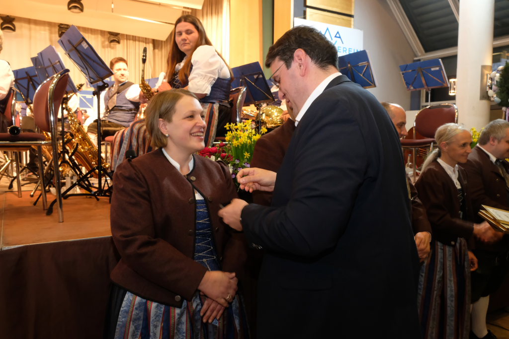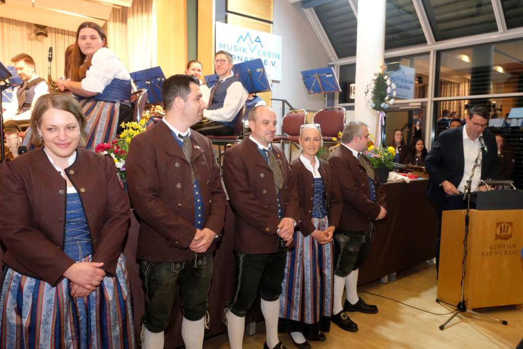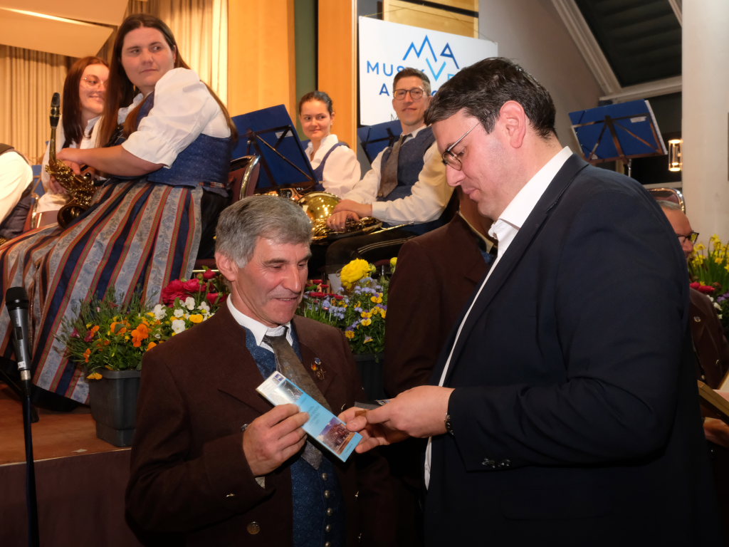 Wachter hatte an diesem Abend viel zu tun, denn er durfte Musiker ehren, die zusammen insgesamt über 500 Jahre Engagement für eine der schönsten Sachen der Welt, für die Musik, hinter sich haben. Deswegen holte er sich auch Bürgermeisterin Alexandra Scherer als Assistentin.